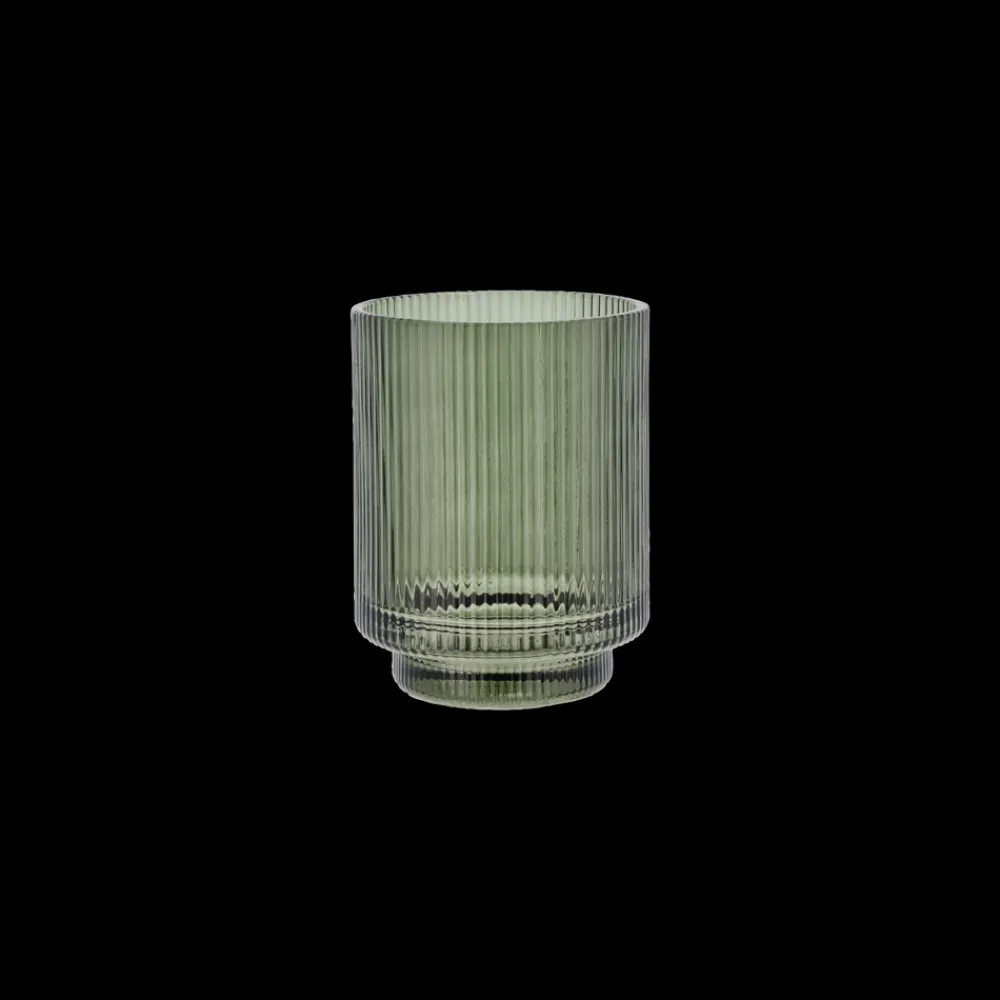 Clarity sæbedispenseren og tandbørsteholderen er lavet af riflet glas med et diskret bølgemønster. Den slanke silhuet giver et cool og elegant look.