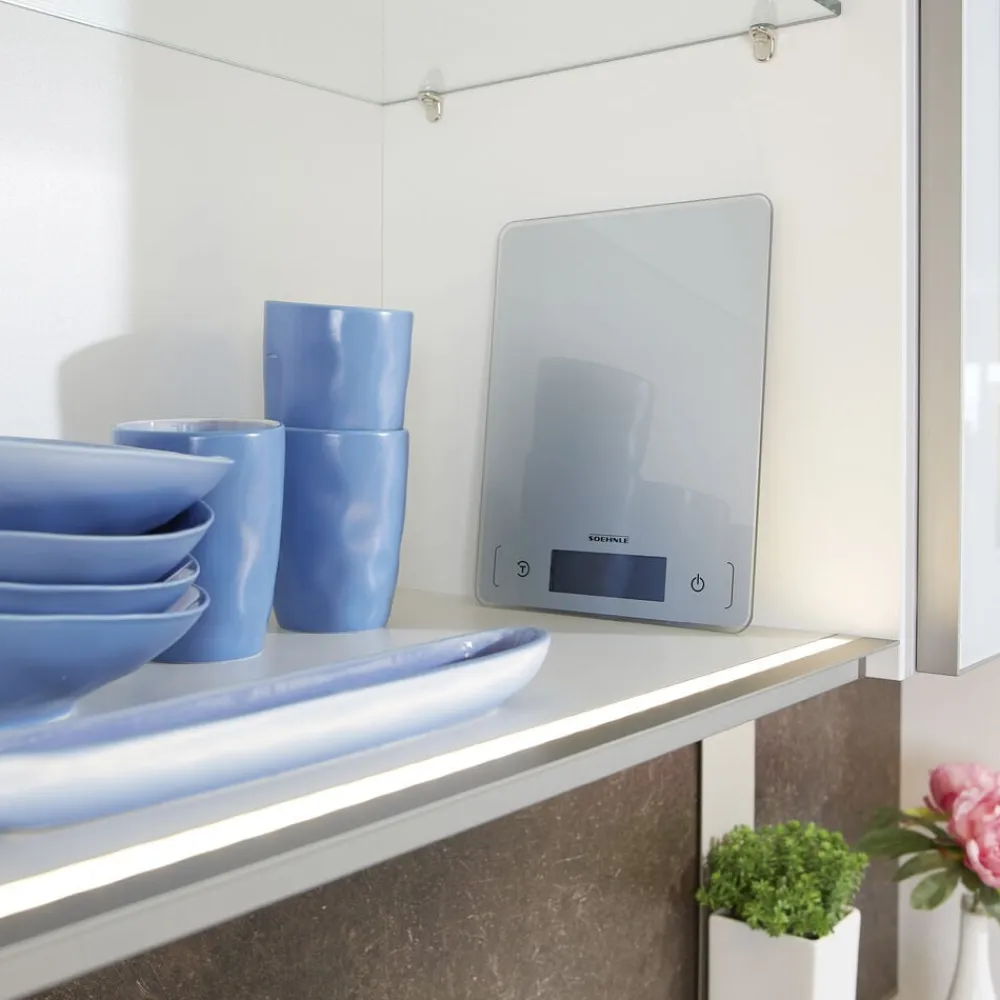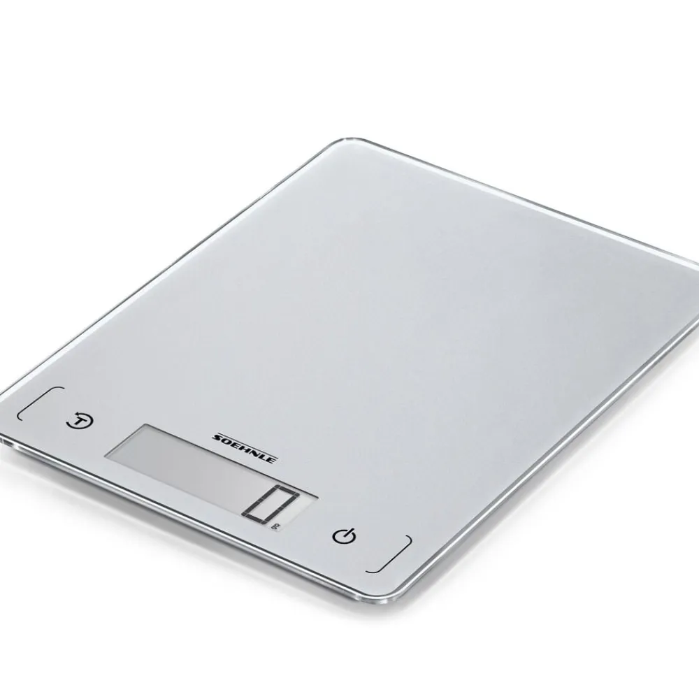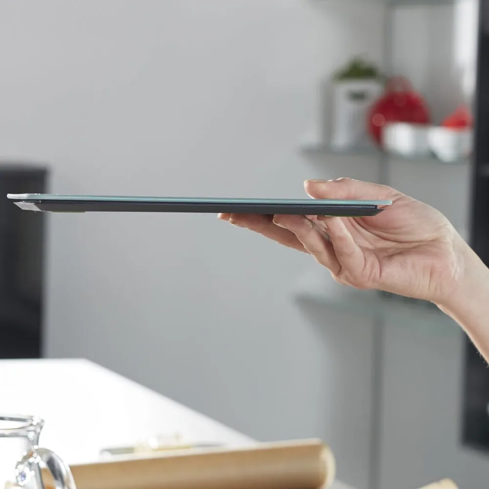 Køkkenvægt i kompakt og ultratyndt design, 17 x 22 x 1 cm. Vejer op til 10 kg med interval på 1 g, hvilket gør den ideel til fx krydderier. Letlæseligt display, tarafunktion og energisparende autosluk-funktion. Enhederne vises i g/kg eller oz/lb.