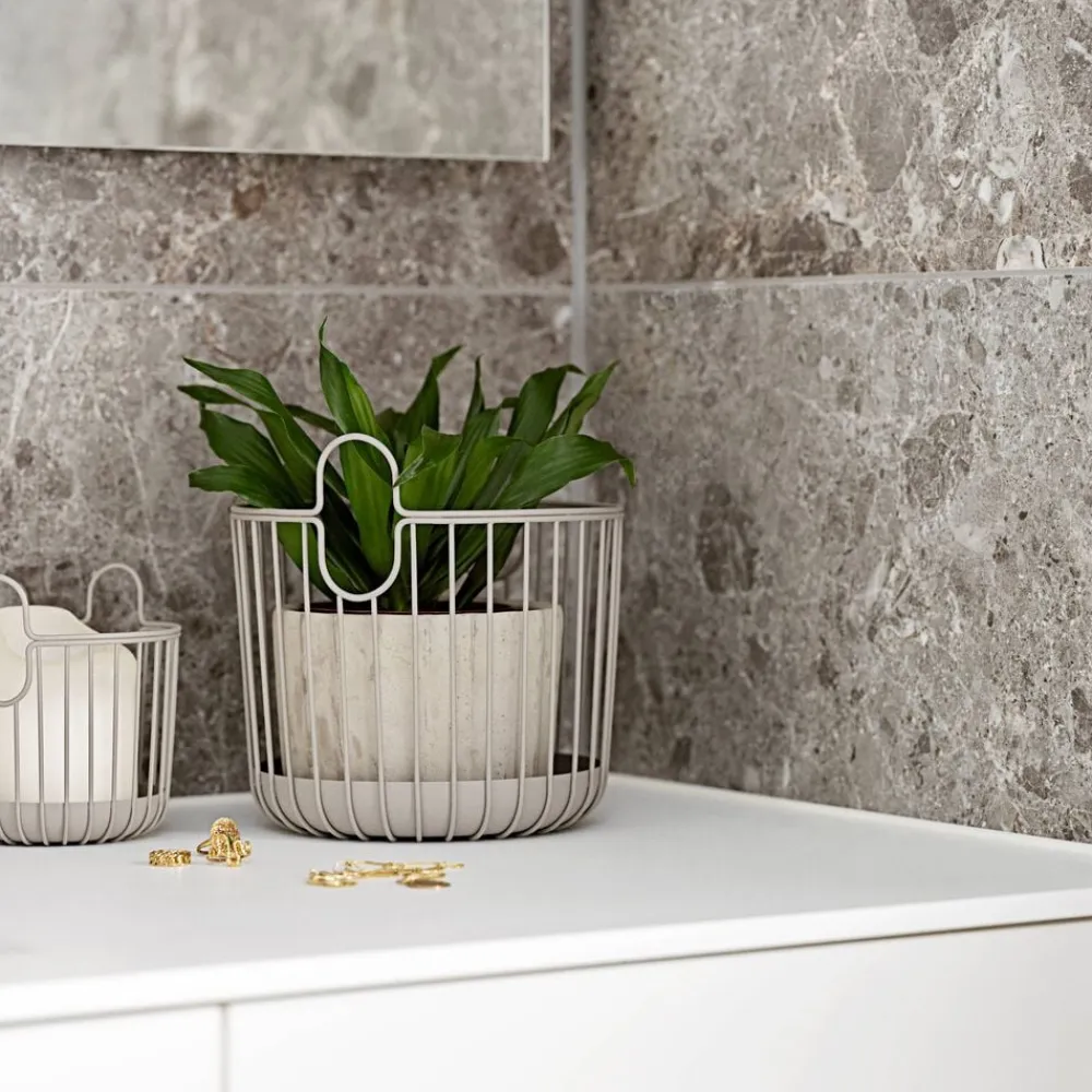 Inu bordkurven er i familie med de store populære gulvkurve i samme serie. Formatet er formindsket, mens anvendelsesmulighederne er vokset. De praktiske bordkurve kan bruges til nærmest alt, du har brug for til daglig. Fra hårpynt på badeværelset til frugt og grønt i køkkenet eller planter på sofabordet.