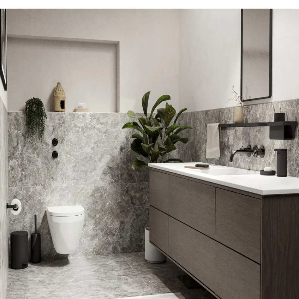 Med Rim kan du indrette badet komplet med alt fra hylder til skraber og sæbedispenser.