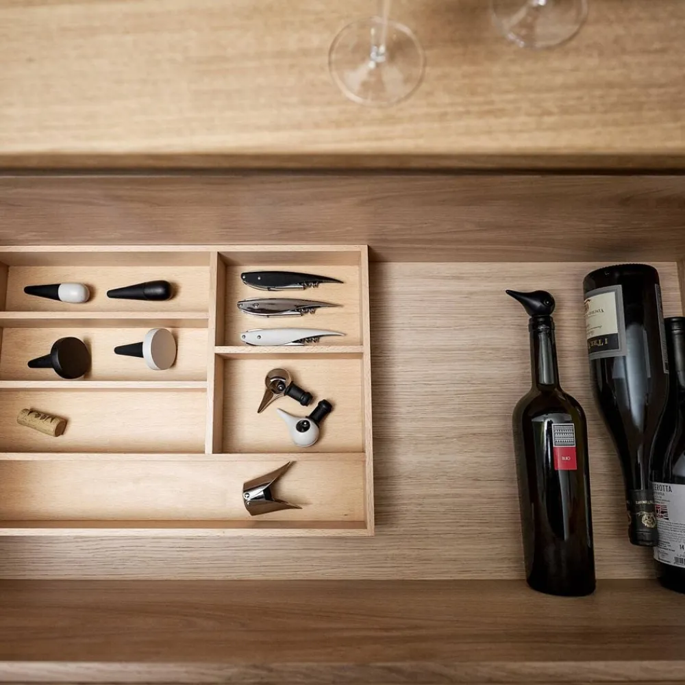 Det elegante figurative design i vinproppen Bird har en genial funktion. Sæt proppen i din åbne vin, vip fuglens næb til modsatte side og få en helt tætlukket flaske. Den kan ovenikøbet ligge ned i køleskabet, til du igen får lyst til et glas.