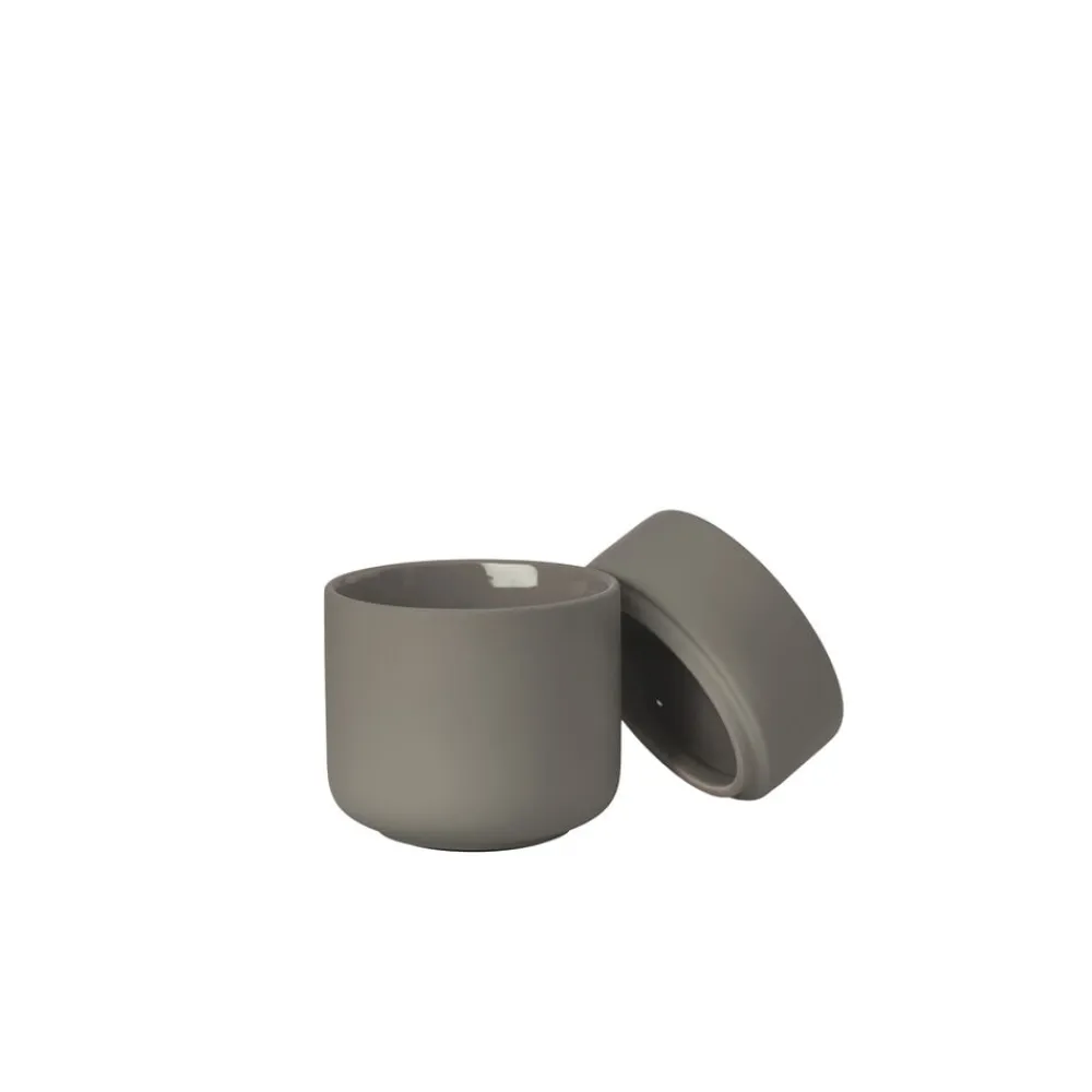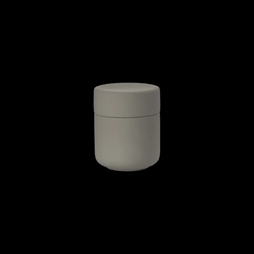 Keramikkrukken med låg har samme enkle, organiske formsprog som resten af den skønne badserie Ume. Den kan rumme dine hårspænder, makeup, vatpinde, vatrondeller eller hvad du ellers har behov for at ha’ ved hånden, men ikke nødvendigvis i syne, på badeværelset.
