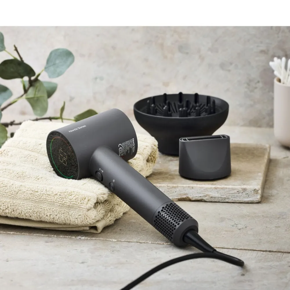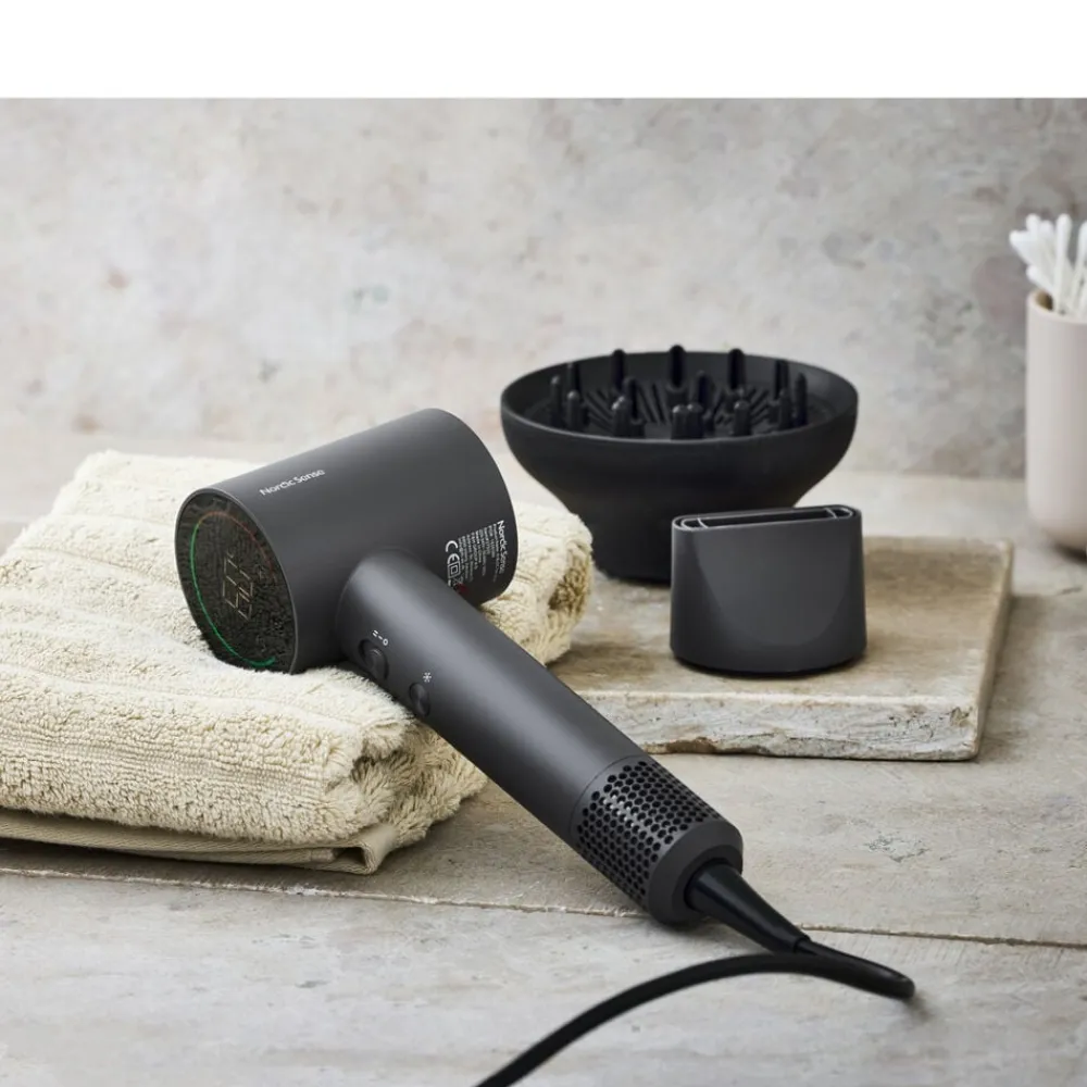 Fint hår og sart hovedbund har godt af en mere nænsom behandling, når du tørrer og styler. Hårtørreren er derfor udviklet med en AI-funktion og en intelligent afstandssensor, der hele tiden måler, hvor tæt den er på håret. Når den nærmer sig hovedet, sænkes varmen automatisk, så temperaturen aldrig overstiger 55 °C. Det betyder, at du kan tørre håret hurtigt og skånsomt uden brug af meget høj varme, imens hår og hovedbund beskyttes mod varmeskader.