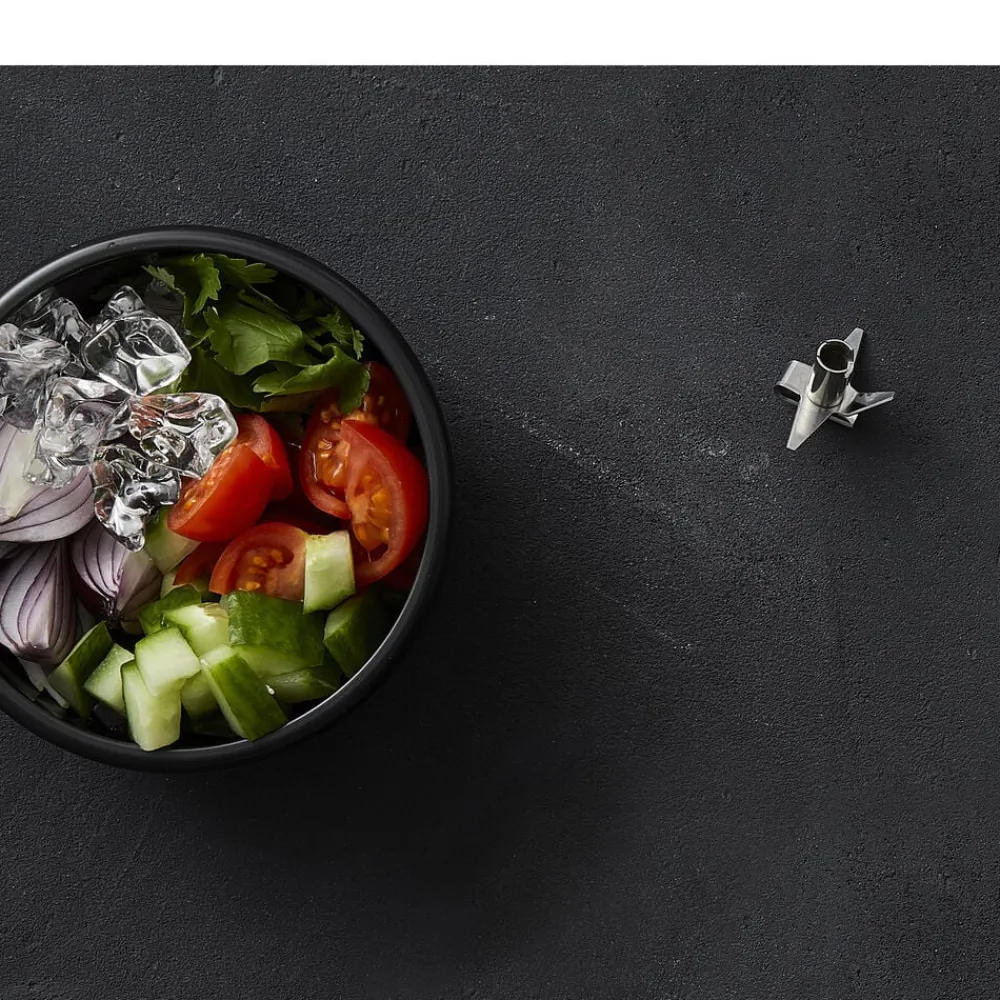 • Trækker ingredienserne ind til bladet, sprøjter ikke og suger sig ikke fast til bunden af beholderen