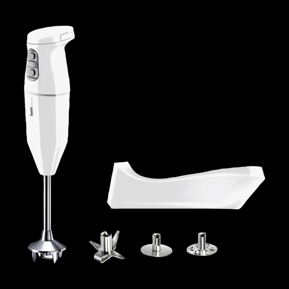 bamix® Cordless-stavblender med en kraftig 10,8 volts motor, der sikrer pålidelig hjælp til selv de hårdeste opgaver i køkkenet. Stavblenderen har to hastighedsindstillinger (8.000 rpm og 13.000 rpm), er 36 cm lang og er trådløs, så du nemt kan tage den med alle steder. Til produktet medfølger en multifunktionskniv, blenderskive, piskeskive og ladestation samt en instruktionsmanual. 5 års garanti på stavblender og lader (2 års garanti på batteriet).
