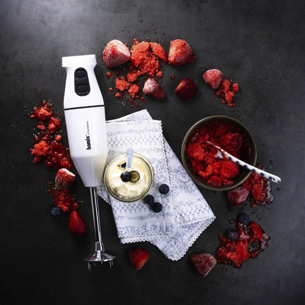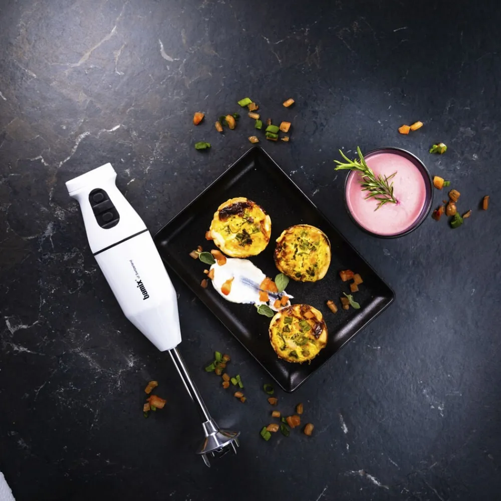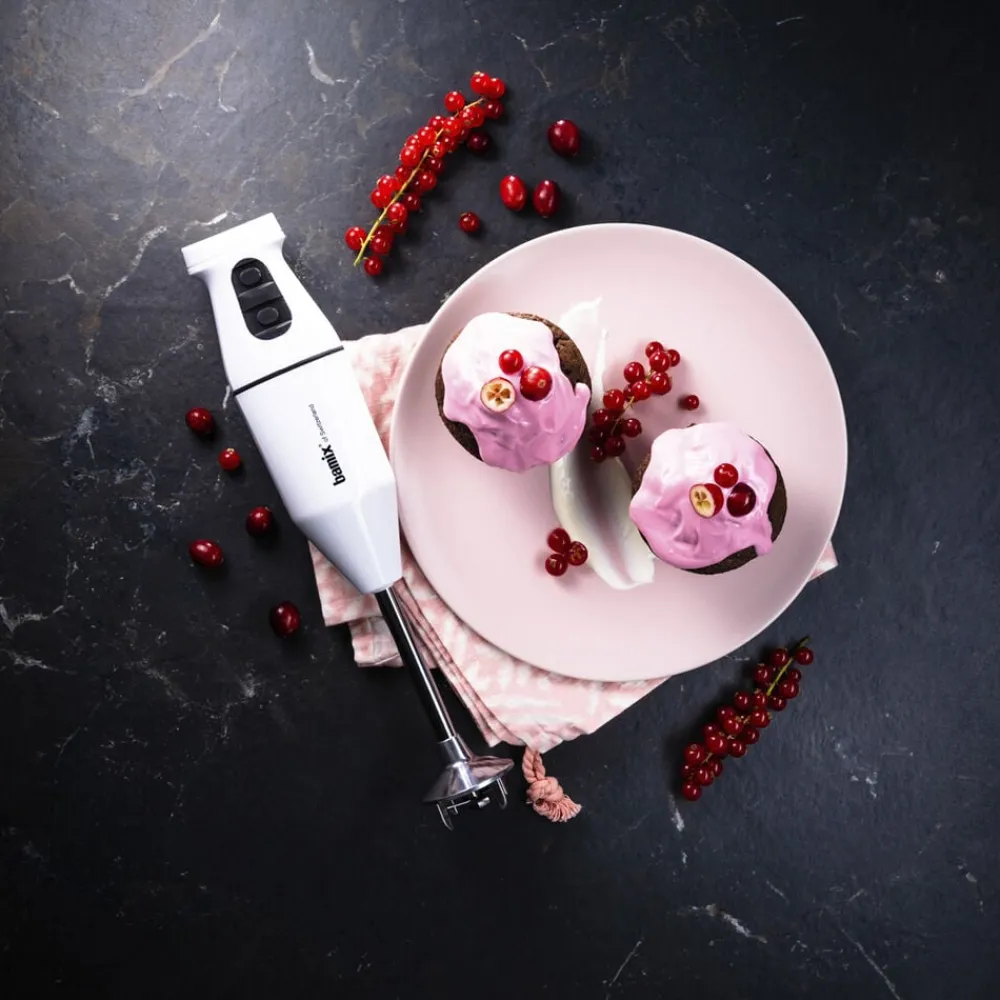 Med din bamix® Cordless og dens tilbehør kan du piske, purere, røre, blende, mikse, mose, knuse og hakke.