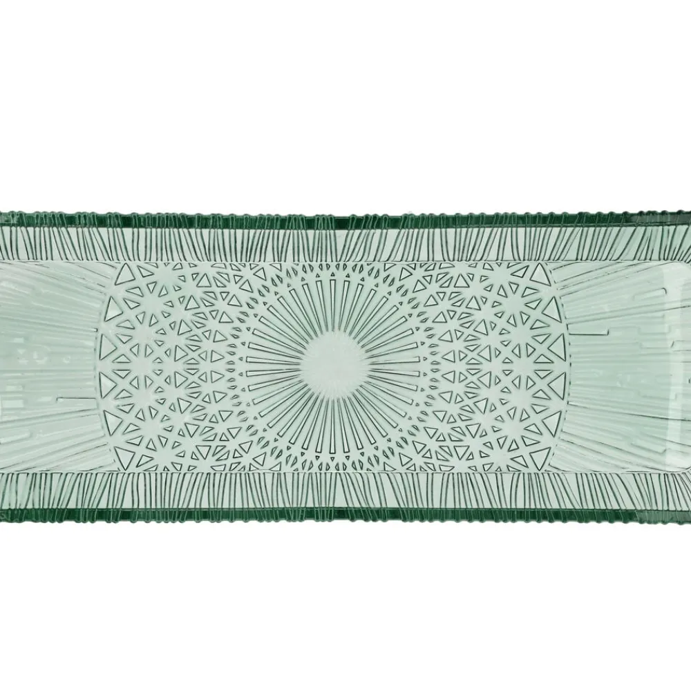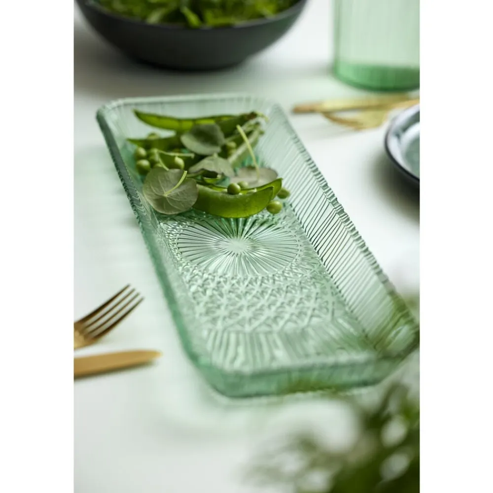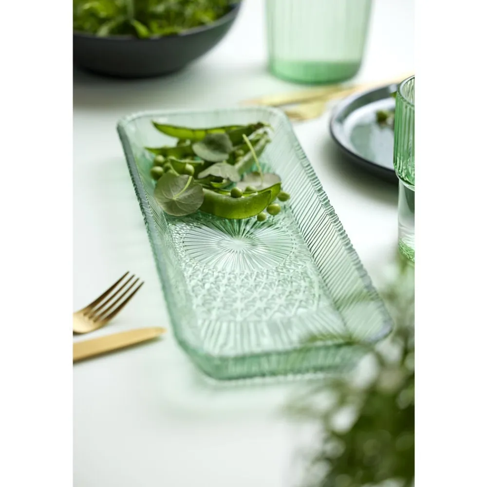 Med et smukt fad fremhæver du dine lækre serveringer. Anret fx en lækker salat på det rektangulære serveringsfad i gennemfarvet glas eller brug det til anretninger af saftigt kød, skåret frugt eller små søde sager. Velegnet til opvaskemaskine. 38 x 14 cm. Når du køber fra Kusintha-kollektionen, støtter du udsatte børn i verdens fattigste områder.