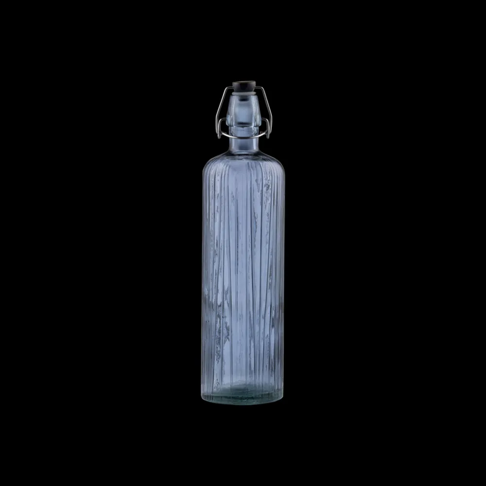 Flot vandflaske i glas med et lækkert, rustikt udtryk. Flaskens patentlukning har en keramikprop med blank, reaktiv glasur i en blå farve, der passer til glassets toning. Håndopvask anbefales. Ved køb af flasken støtter du udsatte børn i verdens fattigste områder.