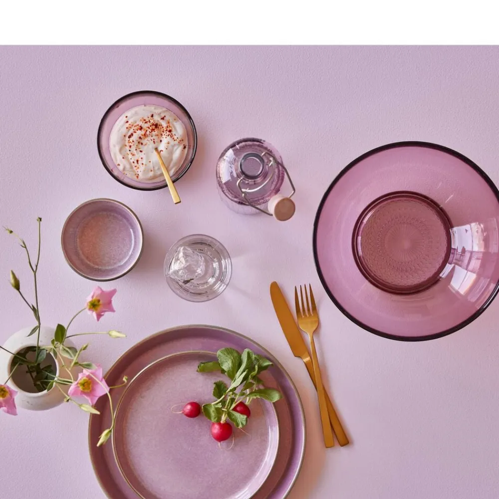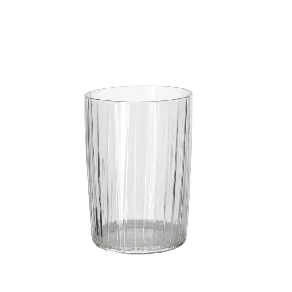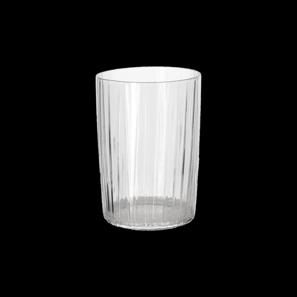 De flotte vandglas i gennemfarvet glas har det samme fine, riflede look som Kusintha-seriens vandflasker. Glassene fås i grøn, amber, pink, blå og en helt klar udgave. Når du køber fra Kusintha-kollektionen, støtter du samtidig udsatte børn i verdens fattigste områder.