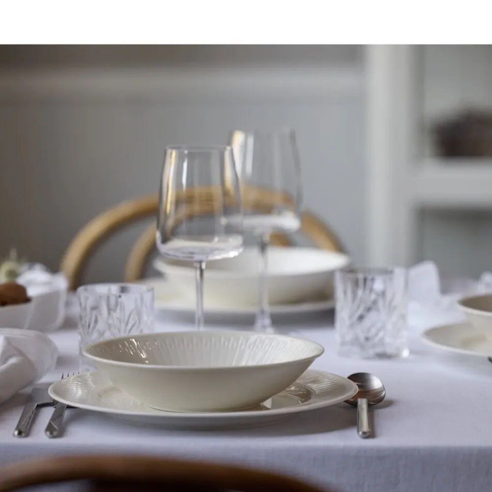 Der er noget særligt ved den danske vestkyst. Inspireret af marehalmens spidse strå har Steffensen & Würtz designet et minimalistisk mønster til stellet, der gengiver de karakteristiske strukturer i smuk harmoni. Designet fanger den dybde og tekstur, der opstår i marehalmens tætte klynger langs kysten. Horizon er et porcelænsstel, der indfanger kystens skønhed og skaber en indbydende stemning ved bordet. Stellets dele føles lette, slidstærke og er skabt til daglig brug. Nyd stellet igen og igen – til både hverdagsmåltider og hyggelige middage.