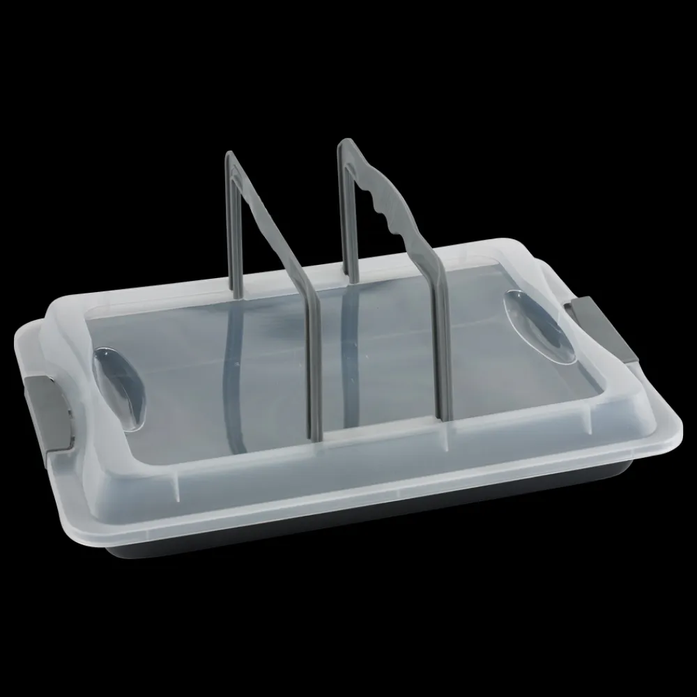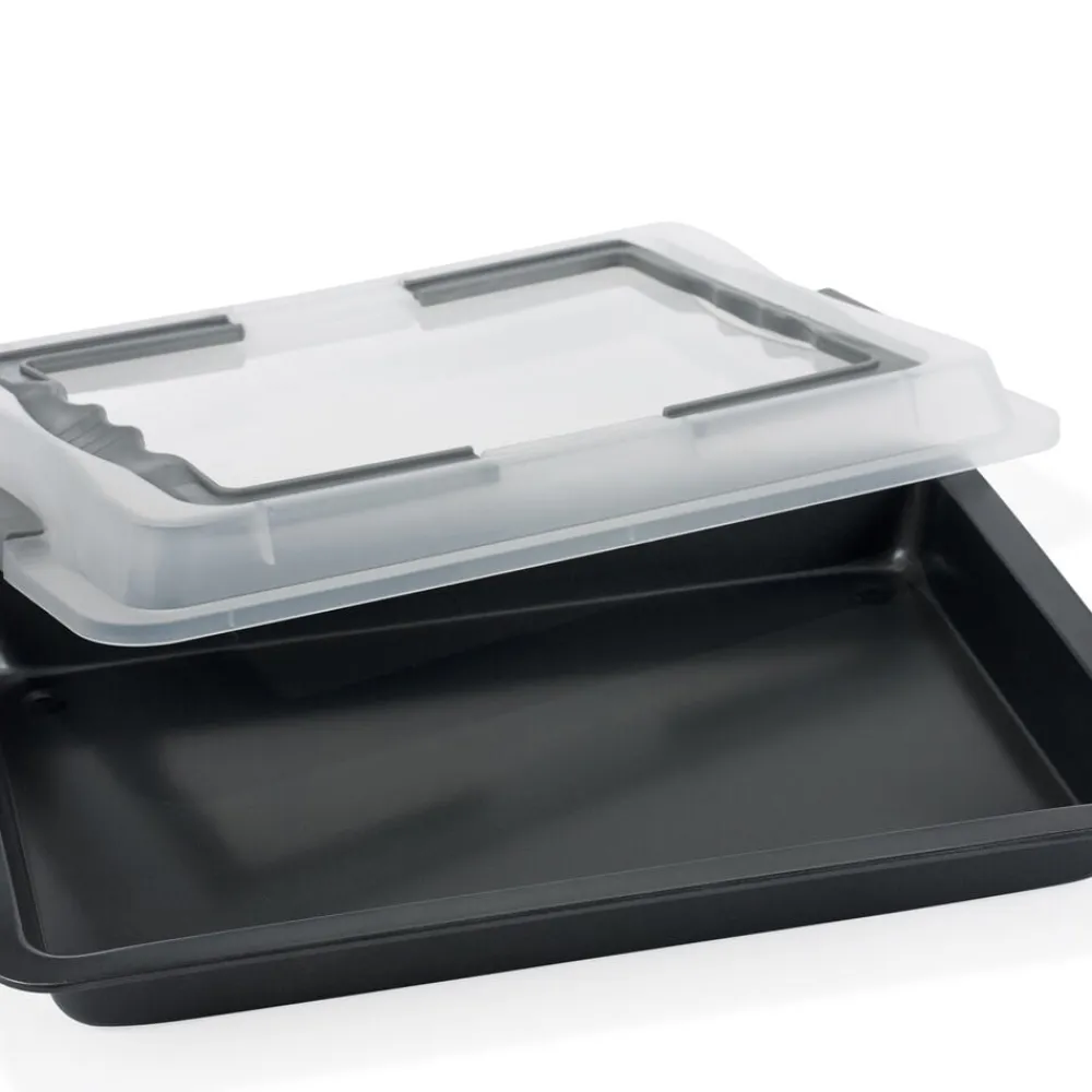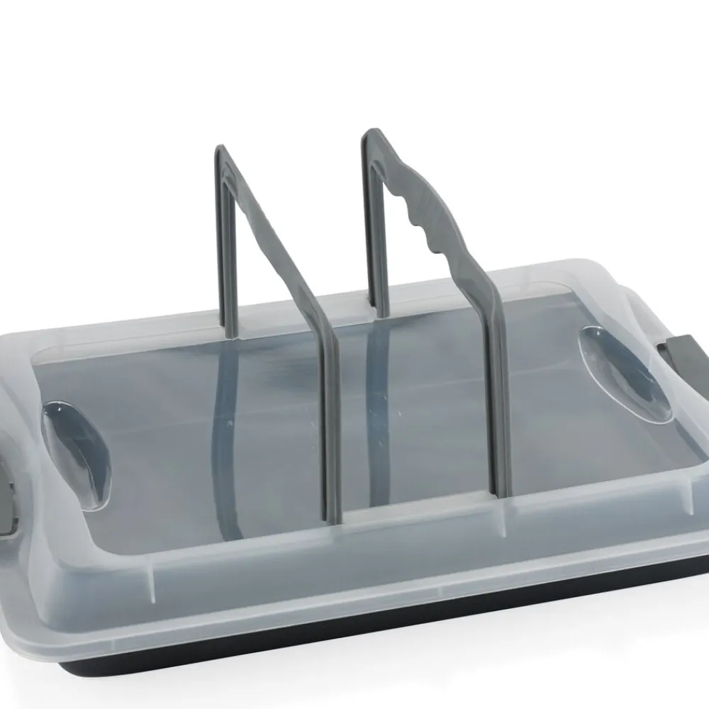 Bradepande med låg og håndtag, velegnet til transport af bagværk. Grå.