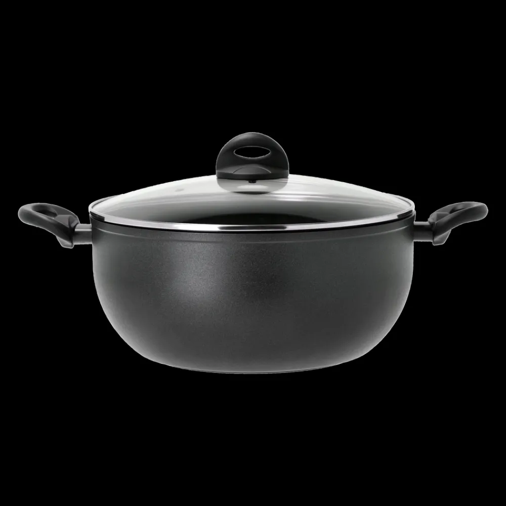 Fremstillet i kraftig aluminium. 4 mm induktionsbund og en keramisk non-stick belægning, der sikrer at maden slipper lettere og at rengøringen bliver nem. Stegegrydens brede bund sikrer en stor stegeflade. Glaslåg med damphul medfølger. Anvendelig på alle varmekilder – inkl. induktion. Ikke egnet til ovn. For at sikre belægningen lang levetid anbefales brug af redskaber i plast, nylon eller træ. Ikke egnet til opvaskemaskine, opvask med børste, varmt vand og opvaskemiddel anbefales, også inden første brug. Diameter 30 cm. Højde 13,5 cm.