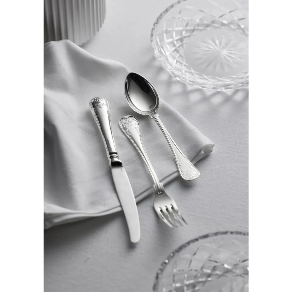 Bestikserien Gammal Fransk er romantisk og stilfuld. Formgivningen er inspireret af det 18. århundredes nyklassicisme, som på skaftet kombineres med et bladmønster i form af en fransk lilje. Designet føles rart at holde om og har samtidig en god tyngde, når du vejer bestikket i hånden.