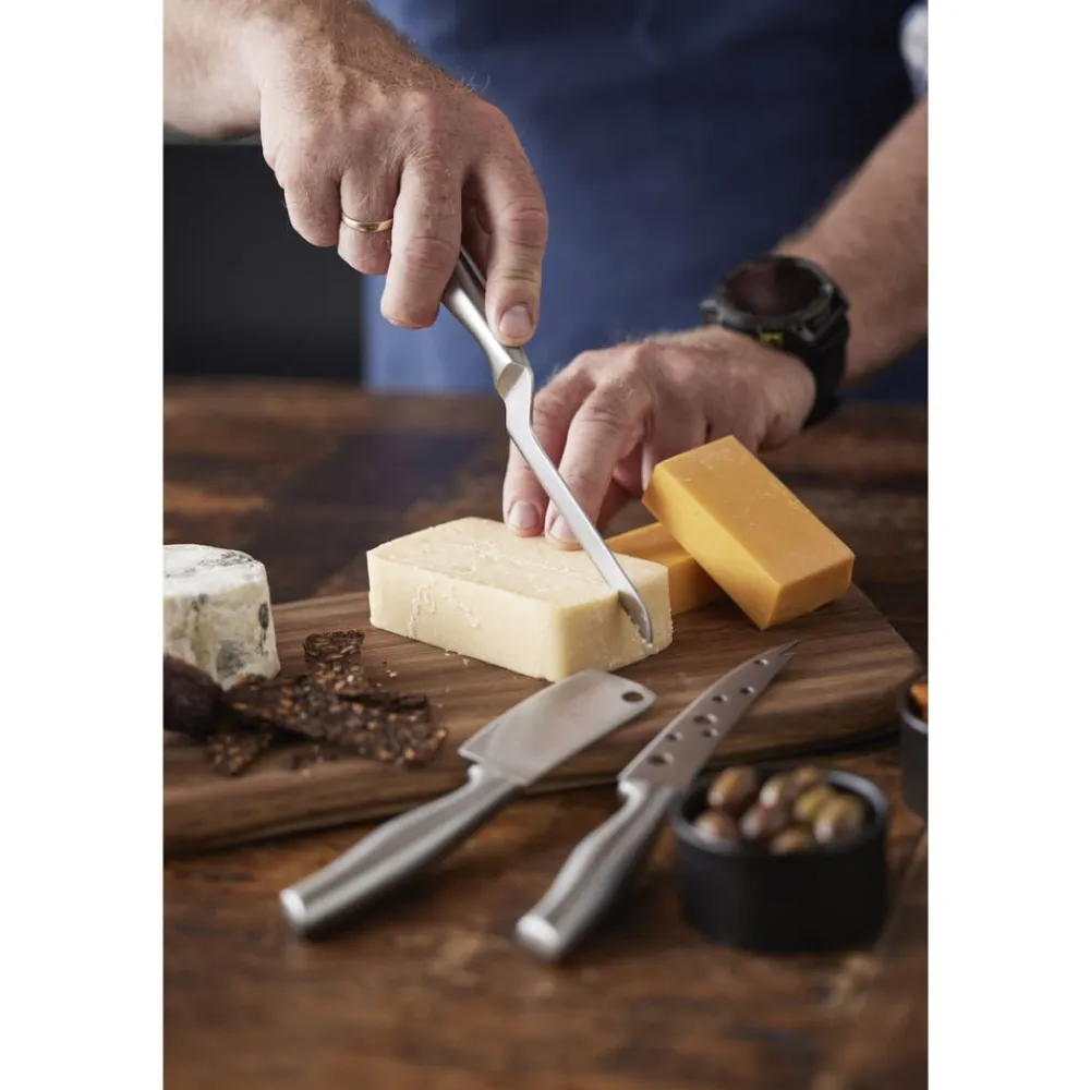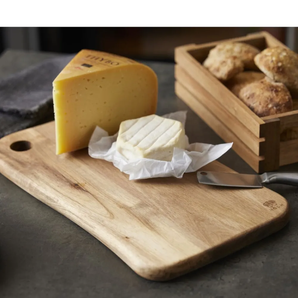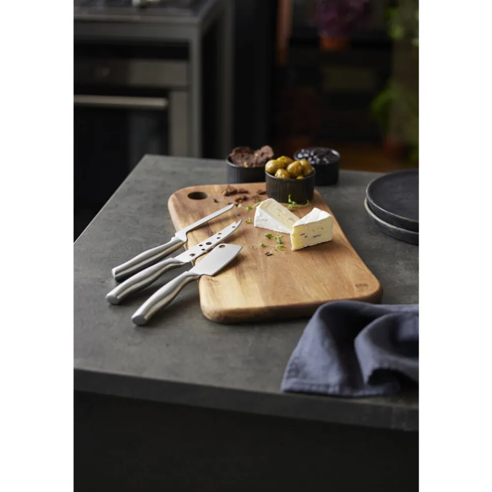 Fuldend et lækkert ostebord med det flotte, organisk formede serveringsbræt af akacietræ og 3 forskellige osteknive af rustfrit stål til servering af både hårde, bløde og cremede oste. Du kan også bruge sættet til antipastiretter eller andet pålæg.