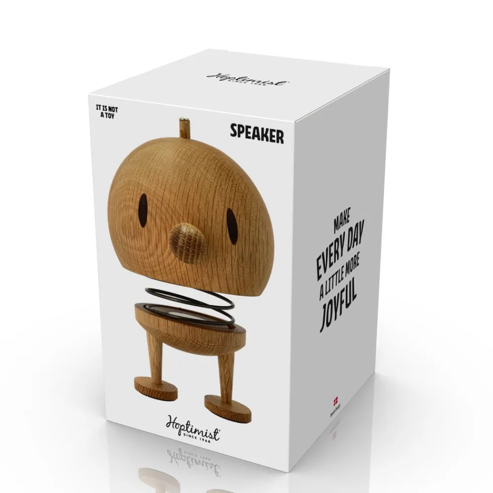 Nu glæder de glade Hoptimister ikke bare øjnene og sjælen, men også ørerne. Med den trådløse Hoptimist-højttaler i fine farver kan du omgive dig med alt det, du kan lide at lytte til. Højttaleren skaber glæde i hjemmet, uanset om du lader den flytte ind på skrivebordet, i dit favorithjørne eller på natbordet. Du styrer volumen direkte fra den enhed, du kobler højttaleren til – det er nemt og lige til. Efter 4,5 timers opladning er højttaleren klar til at sprede musik og god stemning i op til 5-6 timer, afhængigt af den valgte volumen. Højttaleren holder op til 3-3,5 timer ved maks. volumen. Oplades med medfølgende USB-C kabel.