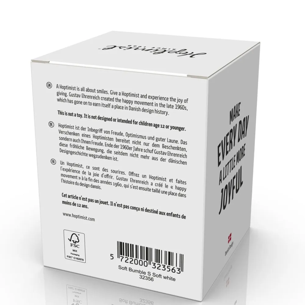 De fleste smil starter med et andet smil. Hoptimisten i soft-udgaven er indbegrebet af smil, optimisme og godt humør, og med sine bløde, matte farver og runde, harmoniske udtryk spreder den glæde, hvor end den havner.