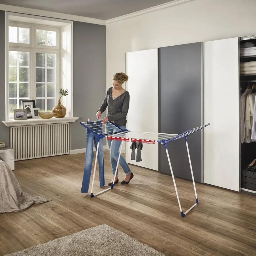 – 2 foldbare vinger med en vingehøjde på 105 cm – velegnet lange bukser mv.