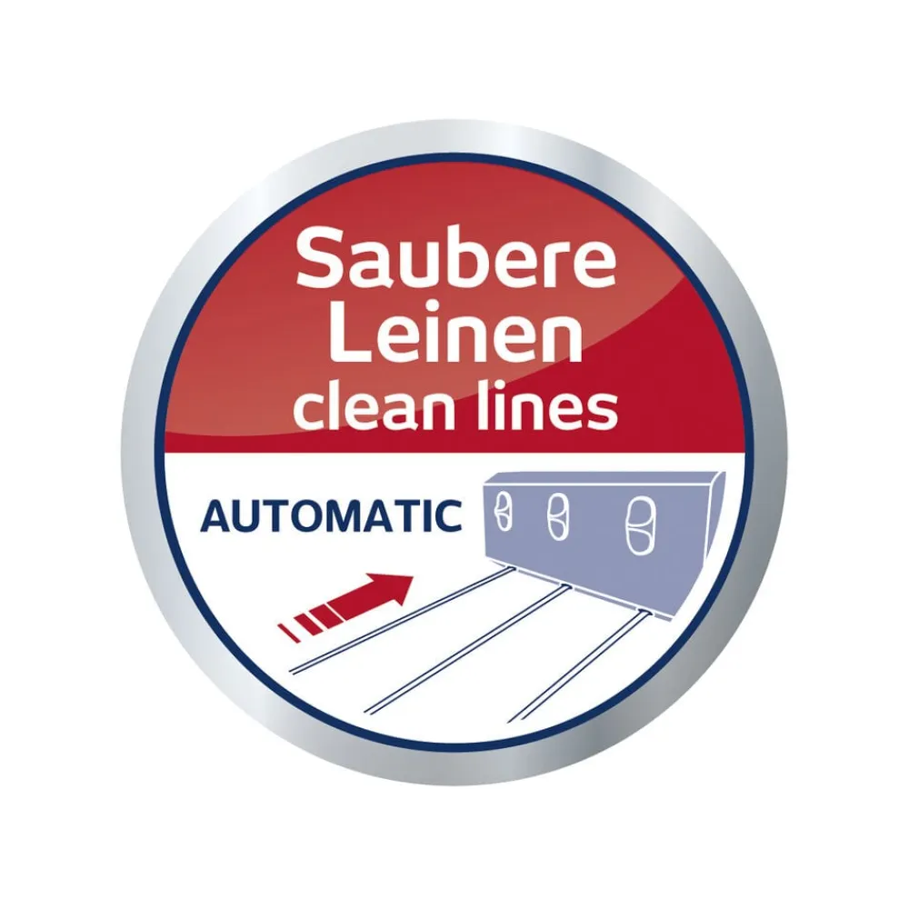 Linen er pvc-coated og trækkes ind i holderen, når den ikke er i brug, hvilket beskytter mod vand og snavs.