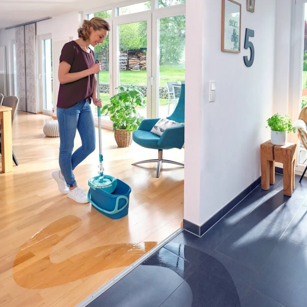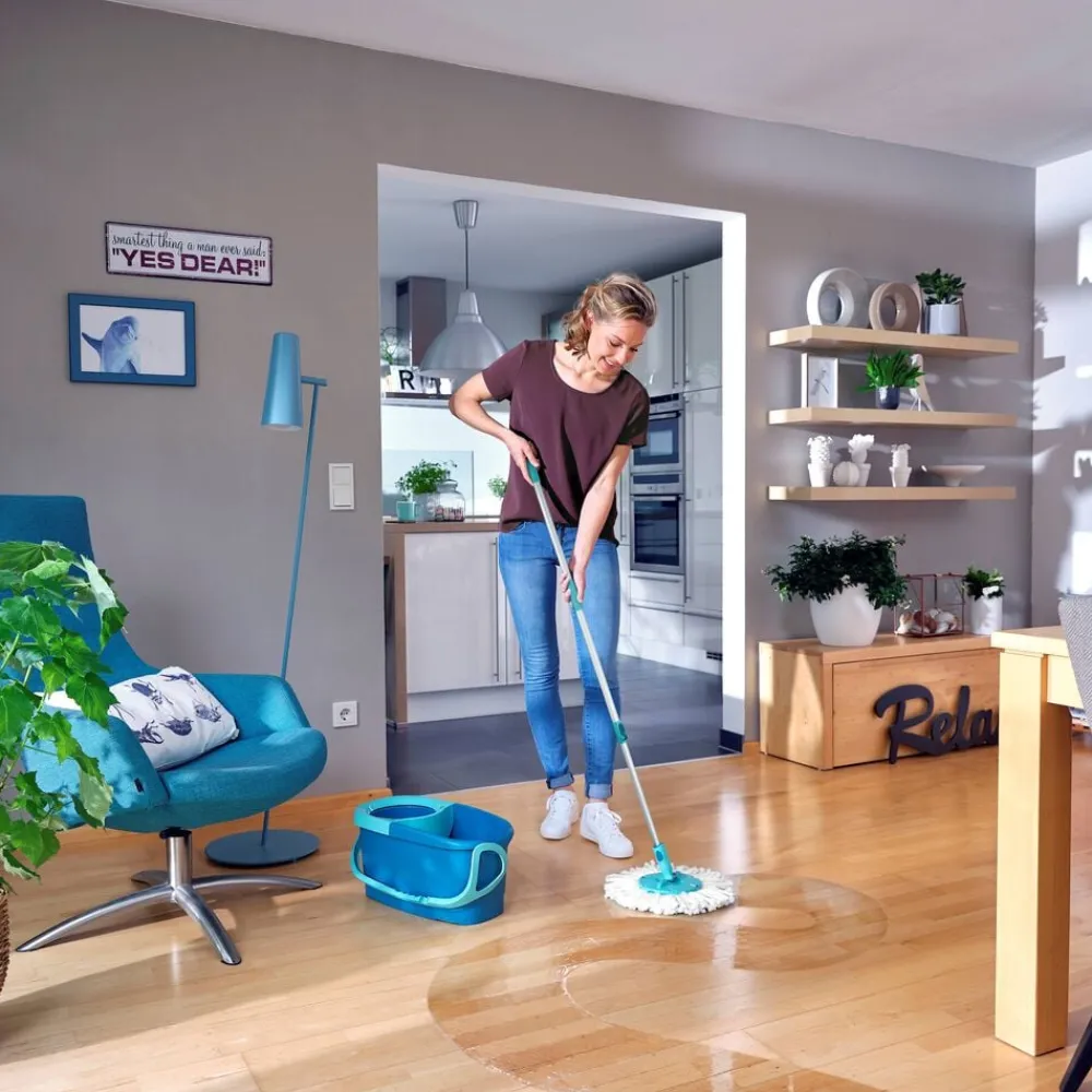 Centrifugeringsteknologien presser overskydende vand ud af moppen, når den ‘pumpes’ i spandens vrider, og frigiver både snavset vand og snavs inde fra fibrene. Du kan nemt bestemme, hvor fugtig moppen skal være, samtidig med at du får en bedre arbejdsstilling og undgår at skulle have hænderne i vandet.