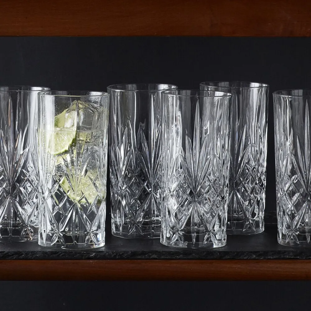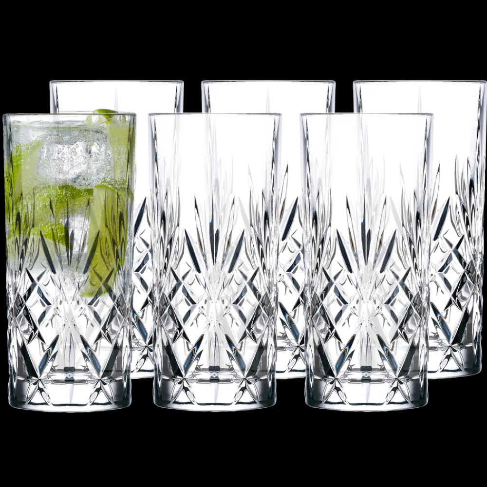 Drinksglasset fremhæver alle klassiske drinks og farverige cocktails, når det smukke mønster reflekterer omgivelsernes lys og skygger. Tåler opvaskemaskine. 36 cl, højde 15 cm, 6 stk.
