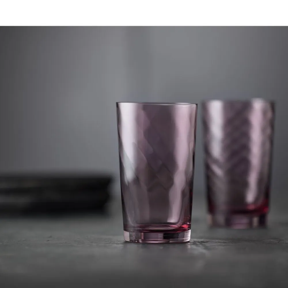 De flotte mundblæste highballglas har et blødt optisk spiralmønster og egner sig godt til borddækning i hverdagen samt festlige sammenkomster, hvor bordet gerne må fyldes med liv og farver. 45 cl.