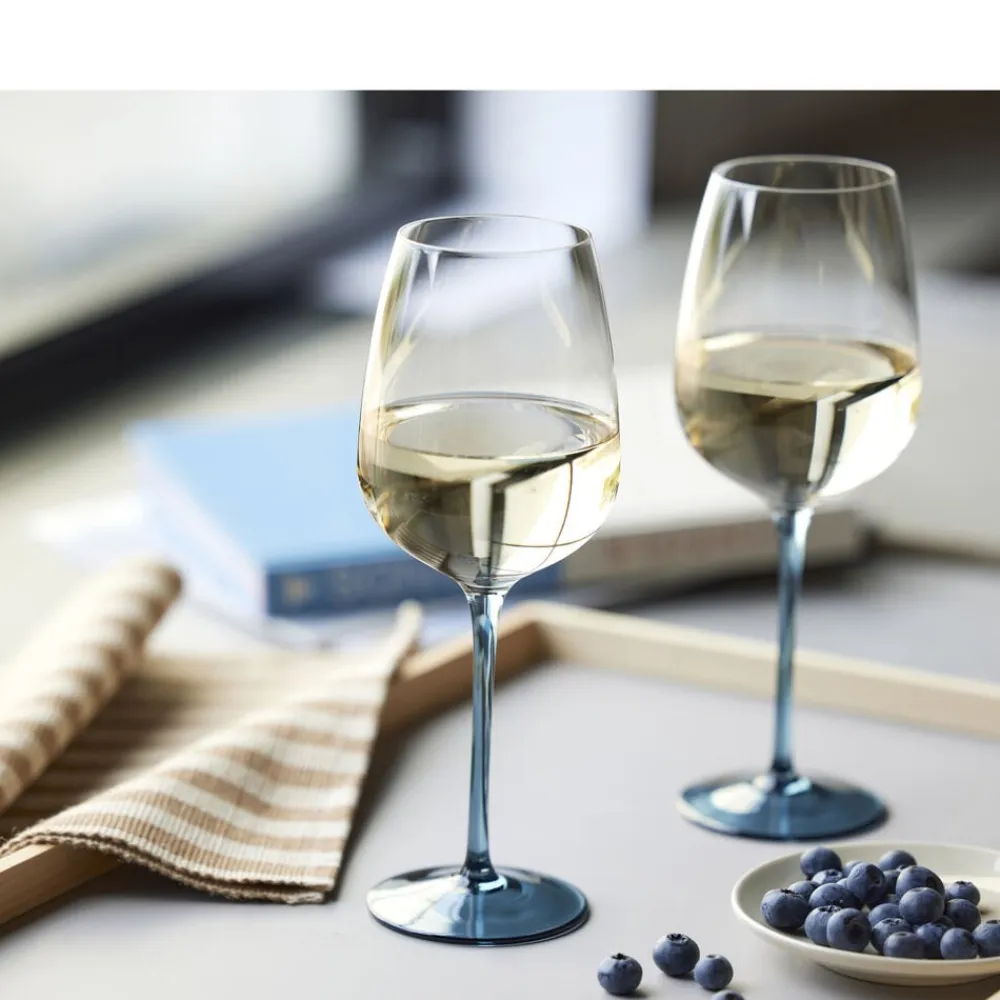De flotte mundblæste vinglas egner sig godt til borddækning i hverdagen samt festlige sammenkomster, hvor bordet gerne må fyldes med liv og farver. 53 cl.