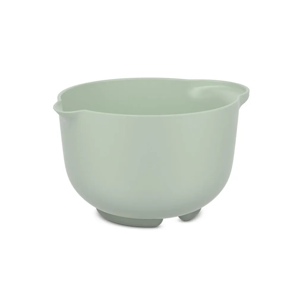 Røreskålen er lavet af pp, et plastmateriale, der tåler mikrobølgeovn og temperaturer op til 110 °C. To smarte åbninger i den skridsikre bundring under røreskålen forhindrer, at der samler sig vand, når du sætter skålen på hovedet i opvaskemaskinen.