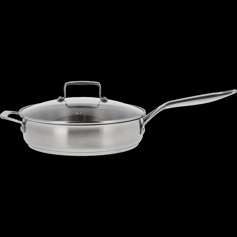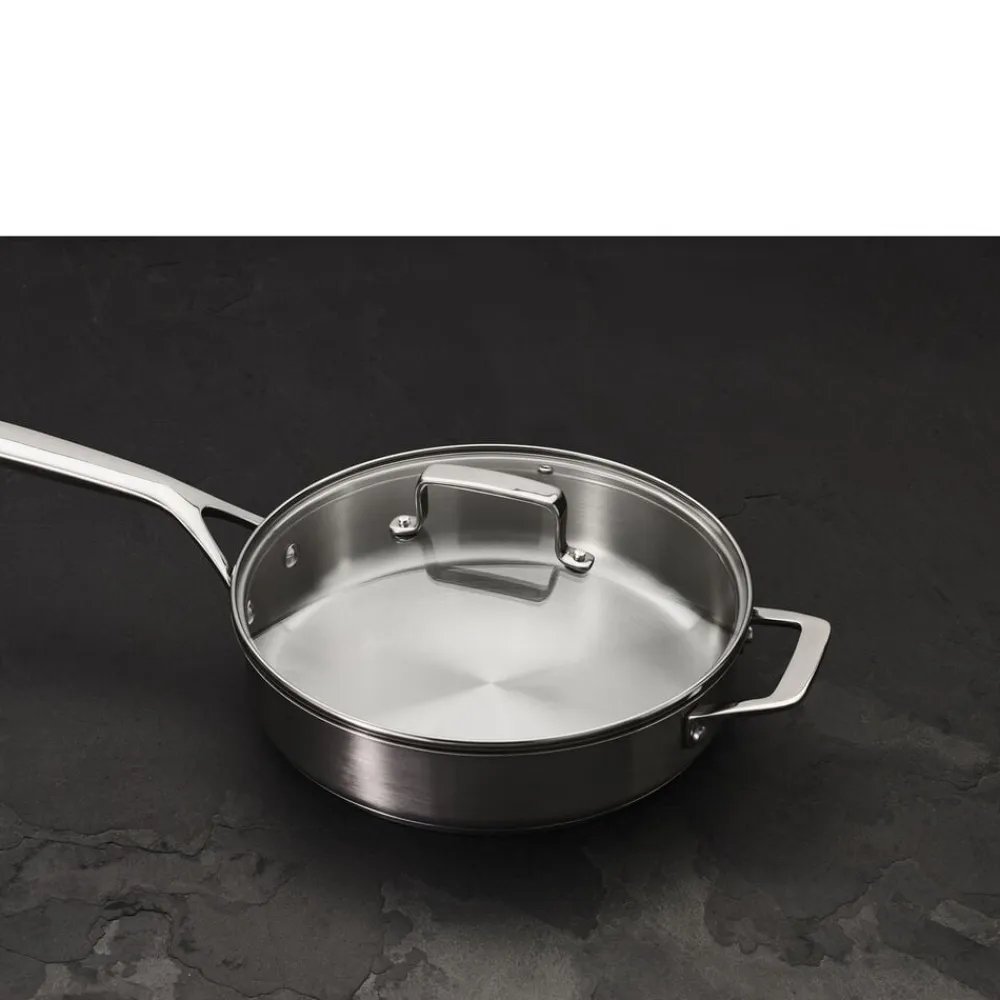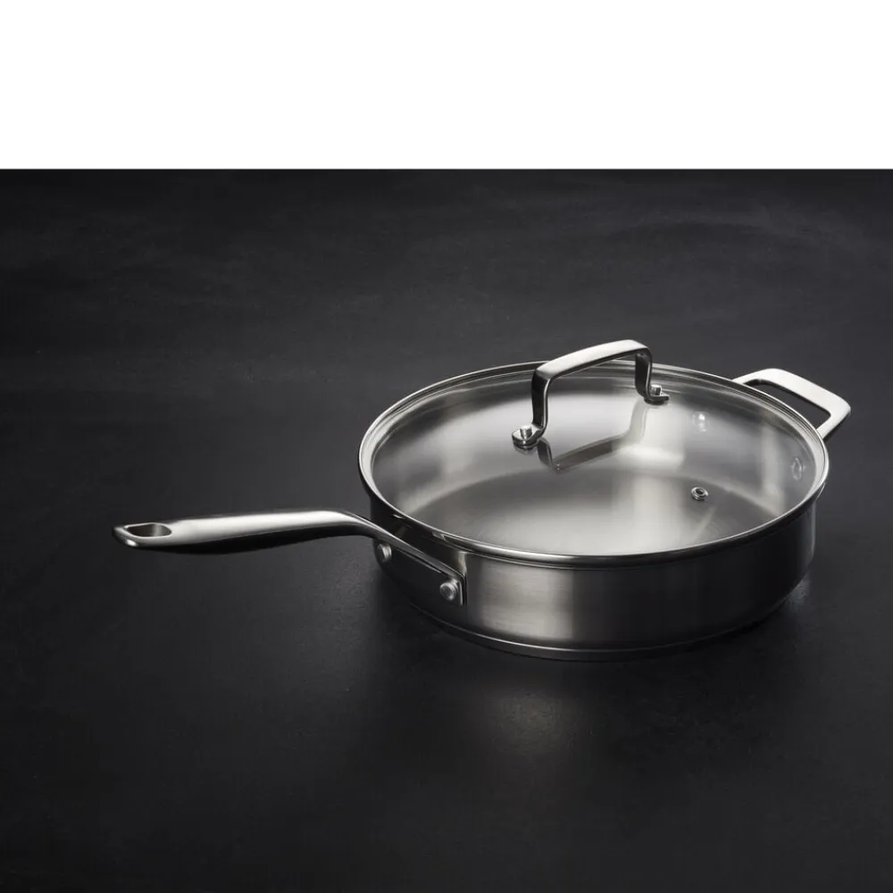 Sauterpanden er perfekt til simreretter og tåler ovn op til 200 grader. Panden har en bundtykkelse på 4,8 mm og består af en aluminiumskerne overdækket af rustfrit stål på begge sider, også kaldet en sandwichbund, hvor det yderste lag er magnetisk. Varmen fordeles og fastholdes jævnt og energieffektivt over både bund og sider, og samtidig er materialet let. Det er desuden meget hygiejnisk og nemt at rengøre. Panden kan bruges på alle varmekilder – fra traditionelle kogeplader, glaskeramiske og induktionskogeplader til el- og gaskomfurer. Velegnet til vask i opvaskemaskine.