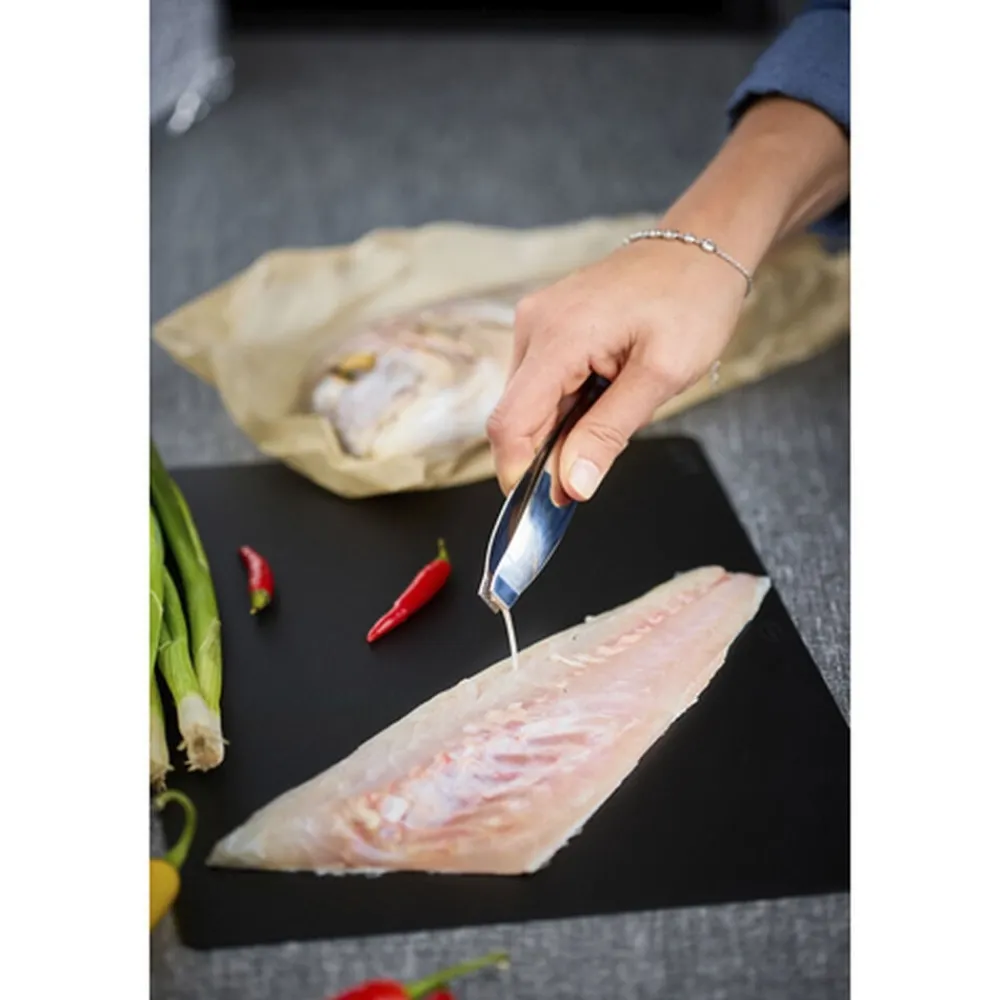RÖSLE fiskebenspincet får fat på alle fiskeben med sit flade, brede greb og sin rillede overflade. Nem at bruge takket være den velafbalancerede fleksibilitet.