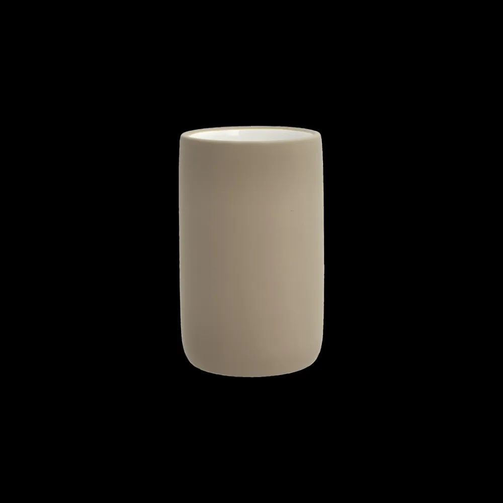 Södahls matte badserie har soft rubbercoating all over, også på sæbedispensertud og toiletbørsteskaft. Kruset er med lækker blank glasur indvendigt.