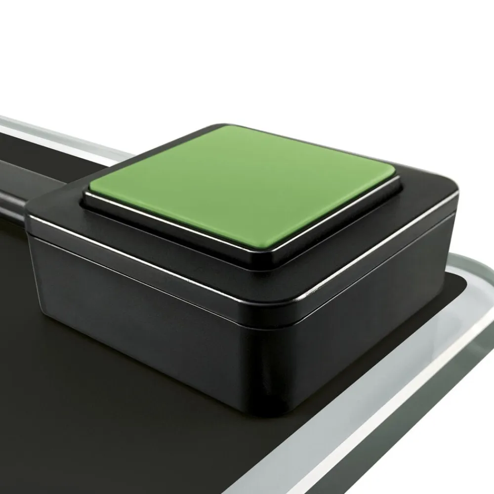 Vægten er fremstillet i sikkerhedsglas og plastik i et enkelt og stilrent design, der klæder alle moderne hjem.