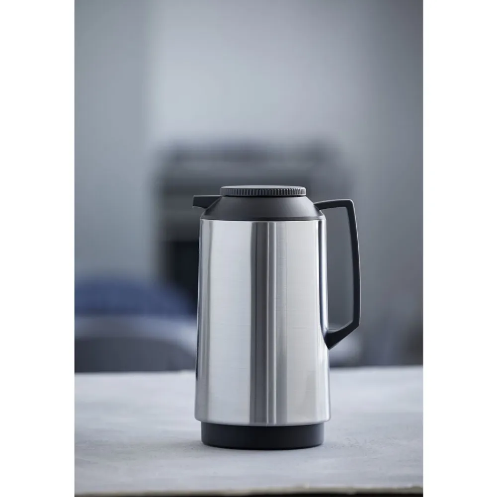 Termokanden fra Tiger er med sit enkle, klassiske design den perfekte termokande og lige velegnet til kolde og varme drikke. Kanden har glasindsats, rummer 1 liter og åbnes og lukkes ved at dreje på låget. Mat stål.