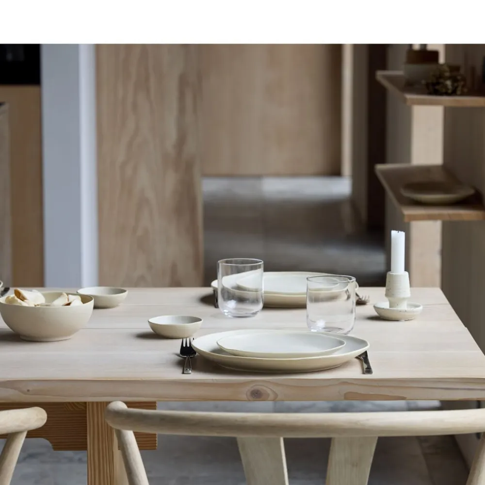 Shoku-stellet forener japansk minimalisme med skandinavisk enkelhed. Med sine organiske former og dæmpede farver skaber Shoku en harmonisk og rolig atmosfære omkring bordet. Stellets dele er designet med rene linjer og silkeblød, mat og blank glasur, der understreger en naturlig æstetik og løfter måltidets visuelle og kulinariske oplevelse. Shoku betyder mad eller spise på japansk og symboliserer glæden ved både maden og samværet omkring bordet. Med sine holdbare materialer og tidløse design er Shoku-stellet det ideelle valg til både daglig brug og særlige anledninger, hvor skønhed og funktionalitet mødes.