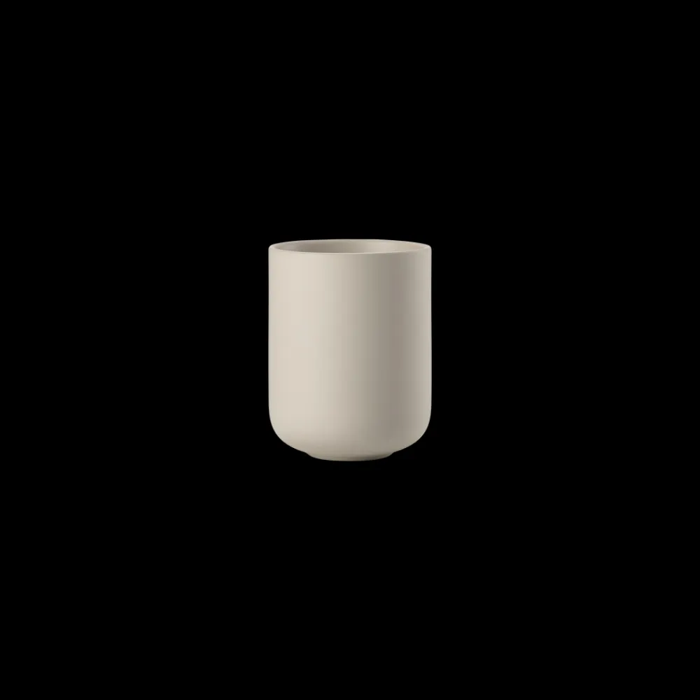 Ved vasken finder du en sød cylinderformet sæbedispenser med et fint lille pumpehoved. Den matcher det klassiske tandbørstekrus, der, ligesom seriens øvrige designs, er udført i stentøj. Takket være stentøjets tyngde og den runde bund står tandbørstekruset sikkert på bordet. Køb evt. flere og brug et af dem til make-up-børster, barbergrej eller andre hverdagsfavoritter, der skal være inden for rækkevidde.