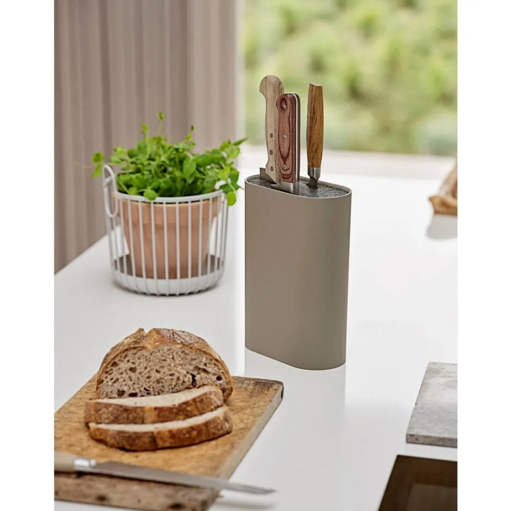 Med Zones flotte Singles knivblok i et stramt og enkelt design får du plads til alle typer knive. Indsatsen består af hundredvis af tynde plaststrå, som giver dig mulighed for at anbringe dine knive på kryds og tværs, tæt sammen eller med ekstra god plads imellem. 9 x 17 cm, højde 24 cm.
