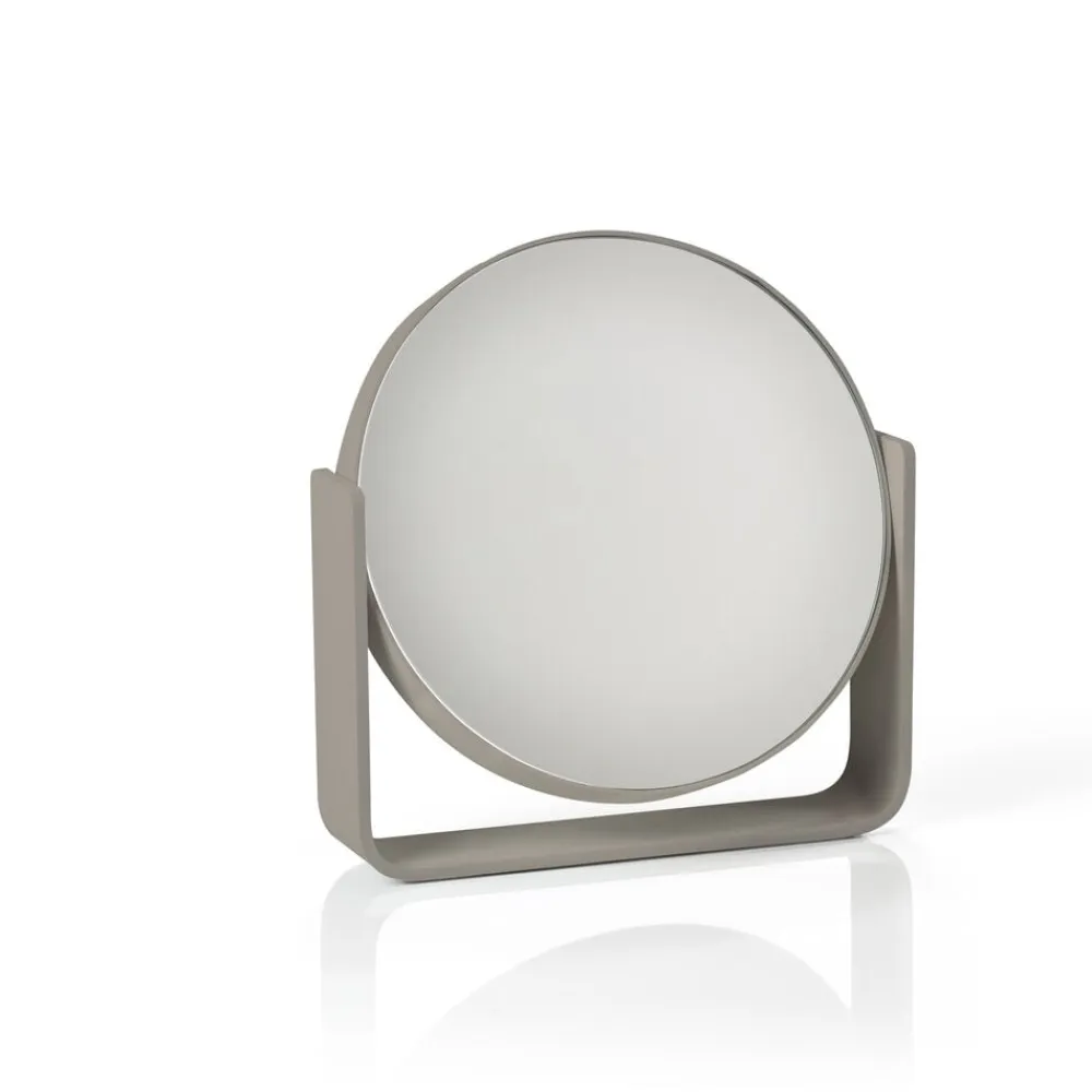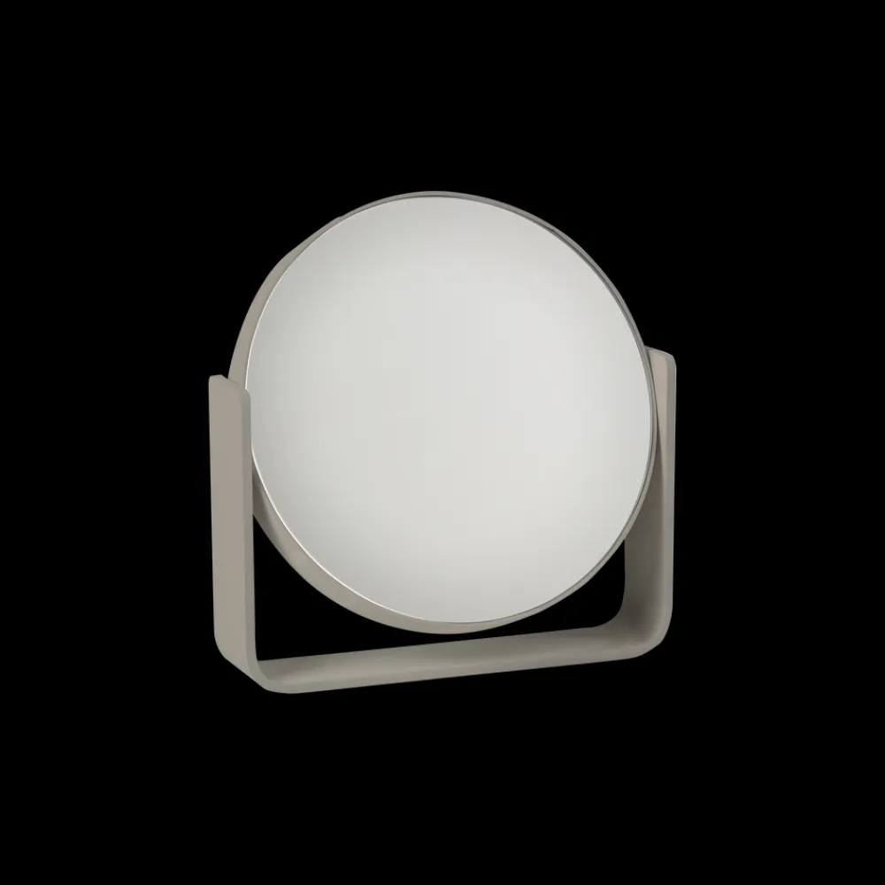 Uundværligt bordspejl, der pynter, hvor end du placerer det. Den ene side er almindeligt spejl, mens den anden forstørrer hele fem gange. Spejlet roterer sikkert om egen akse, da det bæres af en bred aluminiumsramme, som samtidig udgør spejlets stabile base. Det er pulverlakeret og har et fint mat look. Spejlet glider smukt ind i den populære UME-serie og fås i alle 7 farver: Black, White, Soft Grey, Grey, Eucalyptus, Taupe, Olive Green.
