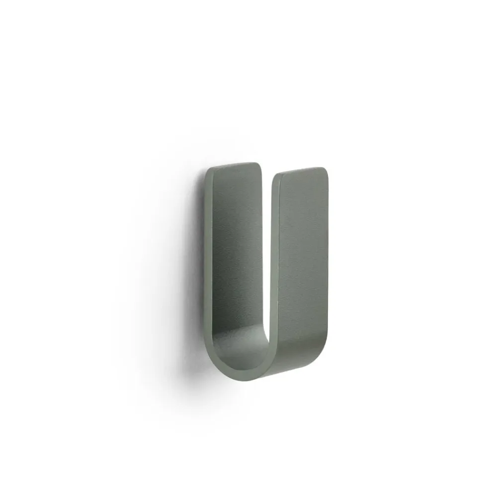 De små vægkroge kan sikkert, men diskret, bære alt fra håndklæderne til badebørsten. De runde hjørner giver krogene et venligt udtryk, og takket være skjulte beslag har de en klædelig lethed på væggen. De er lette at montere, ja faktisk er det sværeste nok at vælge farve. De små skønheder i pulverlakeret aluminium fås nemlig i hele 9 forskellige nuancer samt rustfrit mat stål.