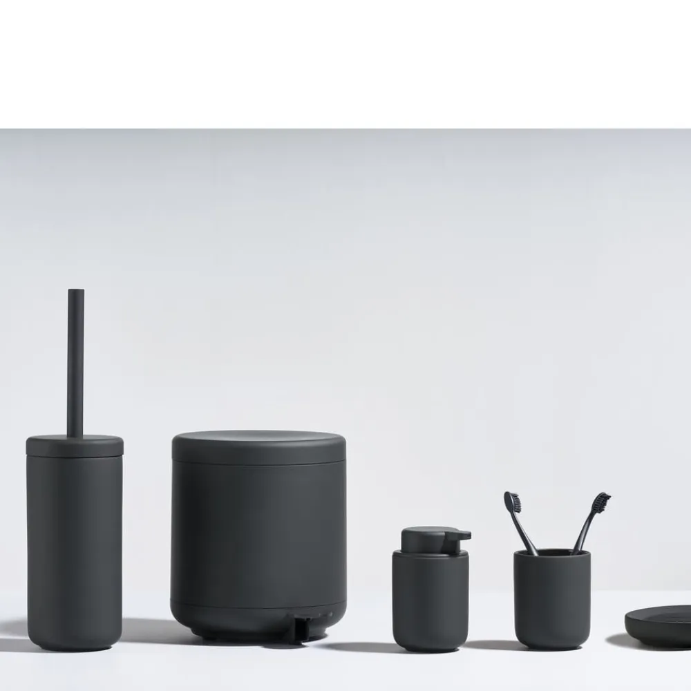 Sæbedispenseren har eksempelvis en lang tud for optimal pumpefunktion, ligesom toiletbørsten er udstyret med en praktisk inderkop, så overskydende vand let kan tømmes af – og så har børsten en god arbejdslængde og glider let på plads i holderen.