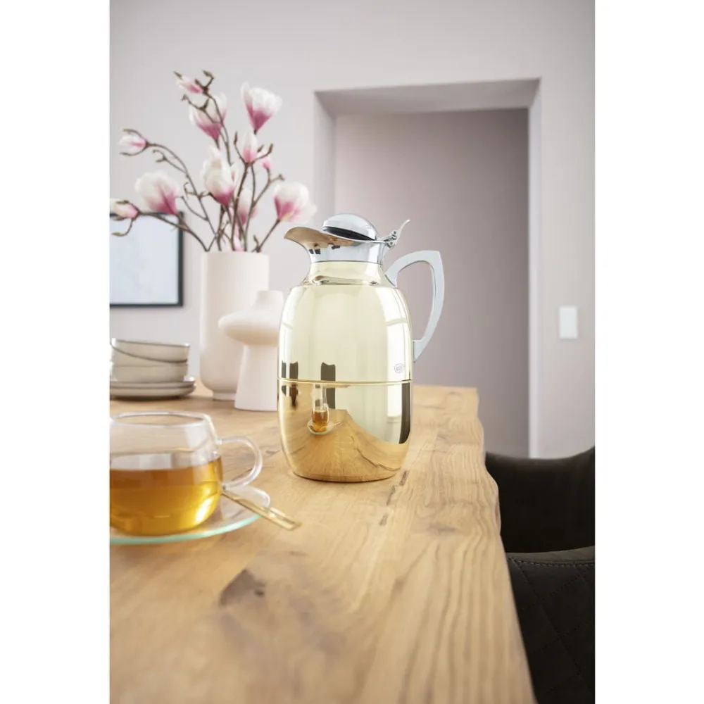 Alfi Juwel er en af verdens mest kendte termokander, og det oprindelige stilrene design kan dateres helt tilbage til 1918. Termokande i poleret stål i høj kvalitet. Dobbeltvægget AlfiDur-indsats i isolerende og hærdet vakuum-glas. Holder varmt i 12 timer, holder koldt i 24 timer. Unikt og praktisk hældesystem. Kan betjenes med én hånd. Ergonomisk, forkromet metalhåndtag.