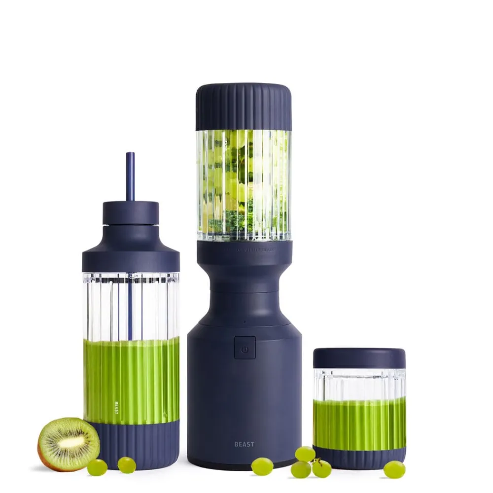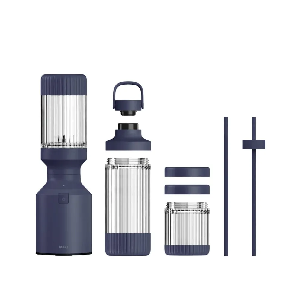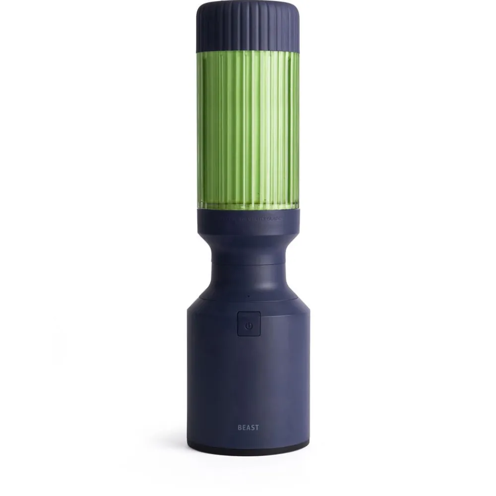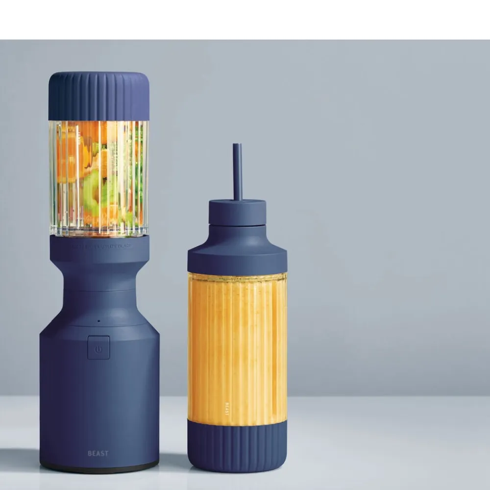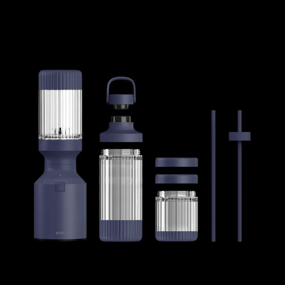 Beast Mighty Plus 850 leveres med tre blenderbeholdere (415, 638 og 786 ml), der fungerer som drikkebeholdere, når du sætter drikkelåg og sugerørshætte på og tager dem med dig på farten. Den rillede beholder giver dig et godt greb.