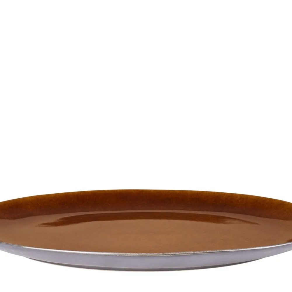 BITZ stort ovalt fad i sort stentøj med mat reaktiv glasur på ydersiden kombineret med en flot blank amber glasur på indersiden. Fadet er imponerende smukt til salater og anretninger. Velegnet til opvaskemaskine.