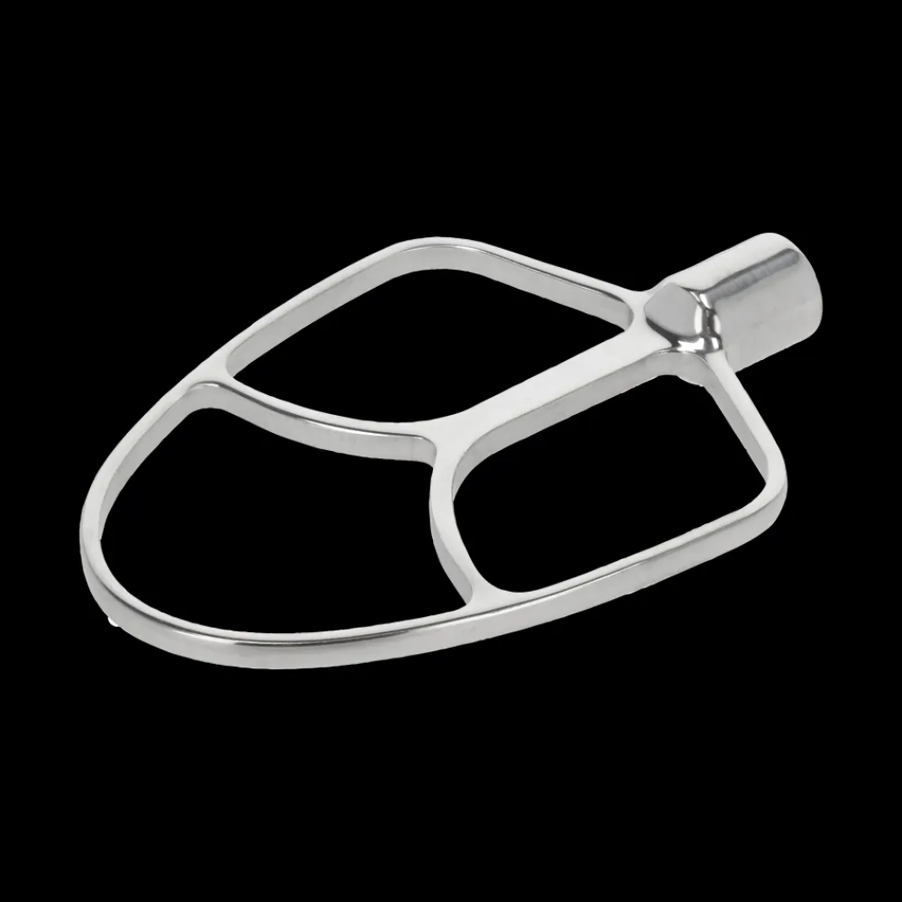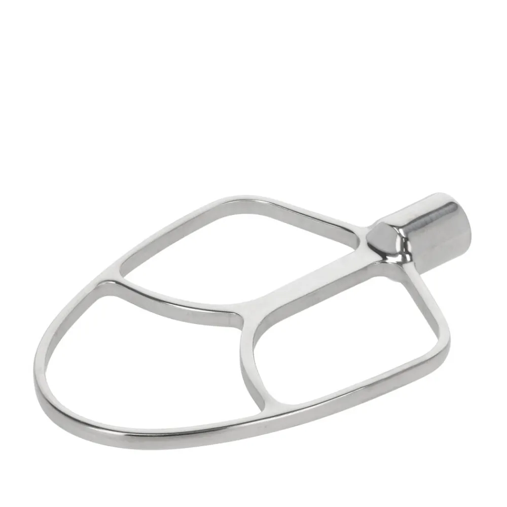 Tilbehørsdel til Blomsterbergs køkkenmaskine XL. Fladpiskeren/K-spaden gør det nemt at røre kagedej eller frikadellefars. Fremstillet i rustfrit stål.