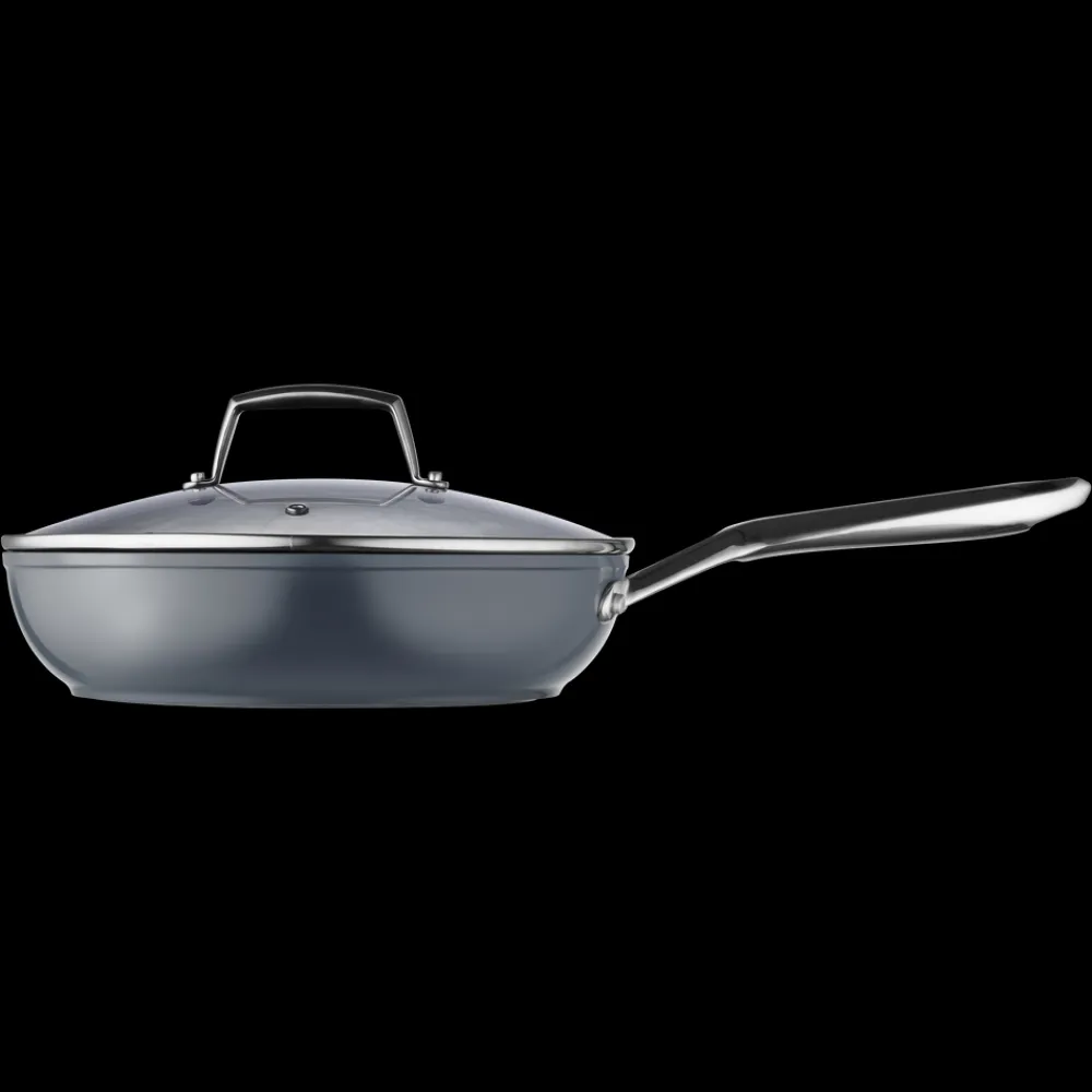 Sauterpande fremstillet af støbt aluminium, som sikrer, at varmen fordeles og fastholdes jævnt og effektivt over både bund og sider. Sauterpanden har en tolags keramisk belægning med non-stick-funktion, er velegnet til alle varmekilder, tåler op til 220 grader C i ovnen og kan gå i opvaskemaskinen. Tåler alle typer redskaber, har tilhørende glaslåg og en diameter på 26 cm.