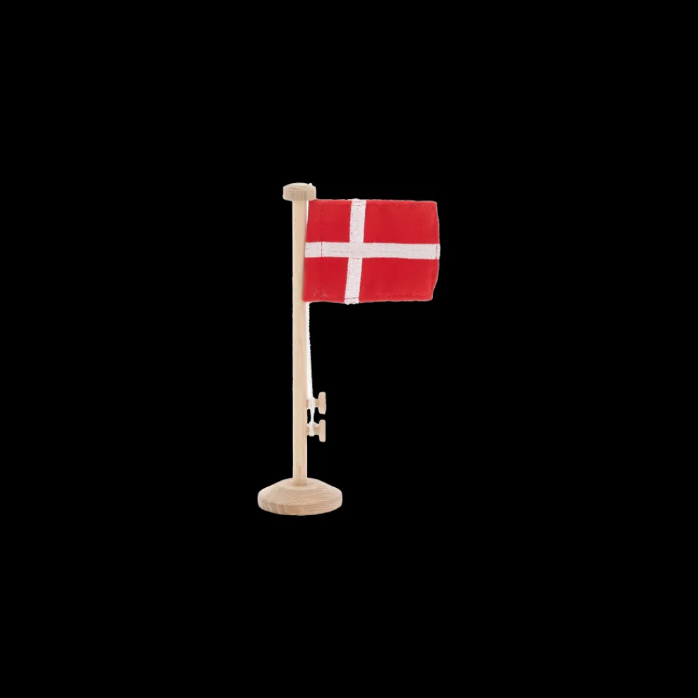 Sæt flag på bordet, så alle kan se, at der er noget at fejre. Den 18 cm høje flagstang er fremstillet i egetræ og har et dansk flag i bomuld, der måler 7,5 x 5 cm. Basen har en diameter på 4,5 cm, hvorunder du finder et fint udskåret logo.