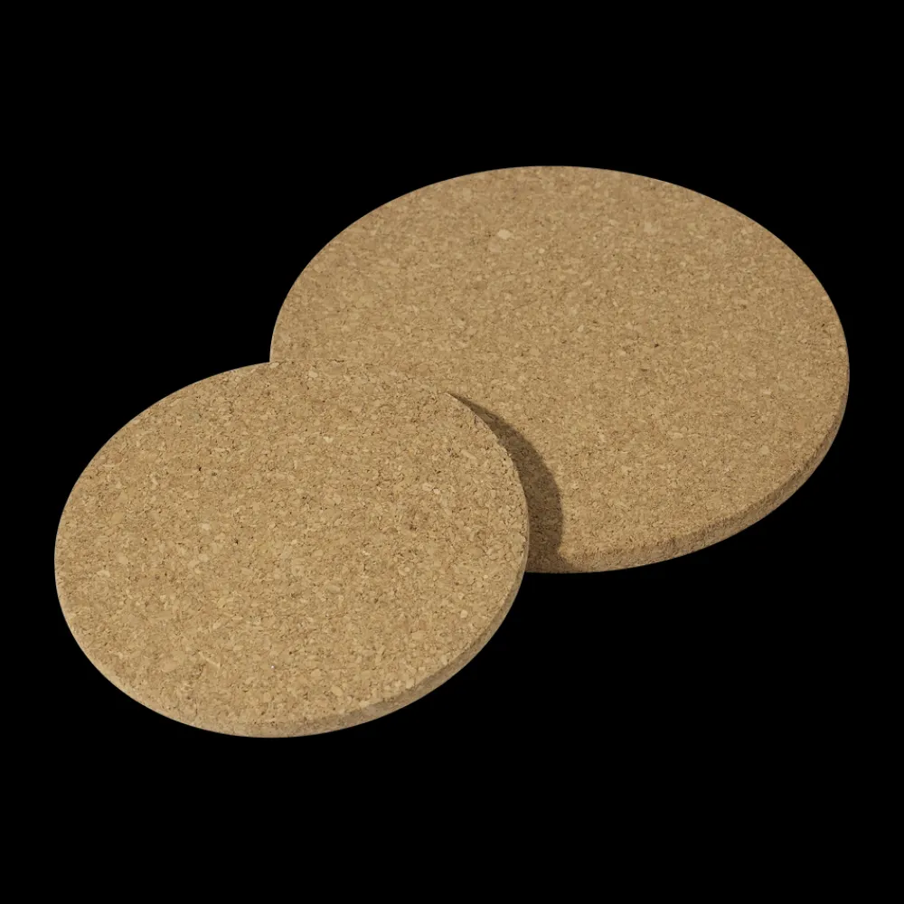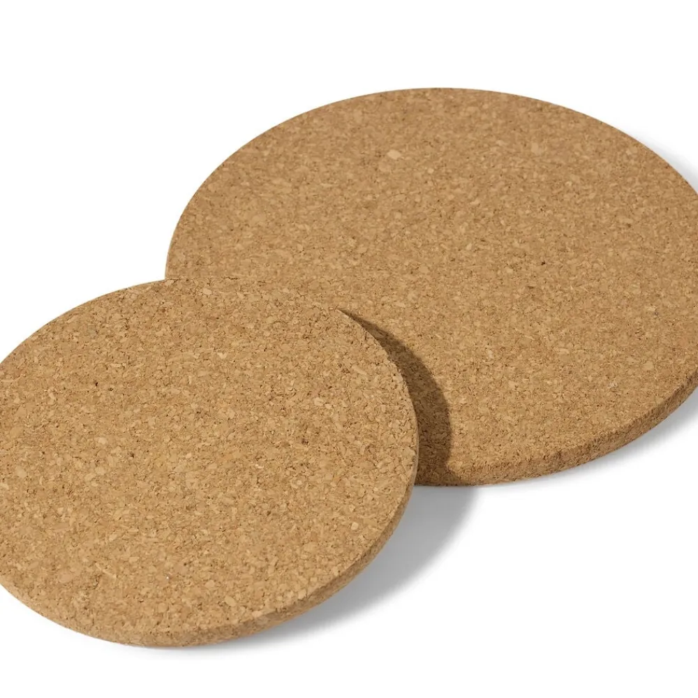 2 stk. runde bordskånere i kork med en diameter på 17 og 22 centimeter, som passer perfekt til forskellige størrelser af gryder, stegepander og fade.