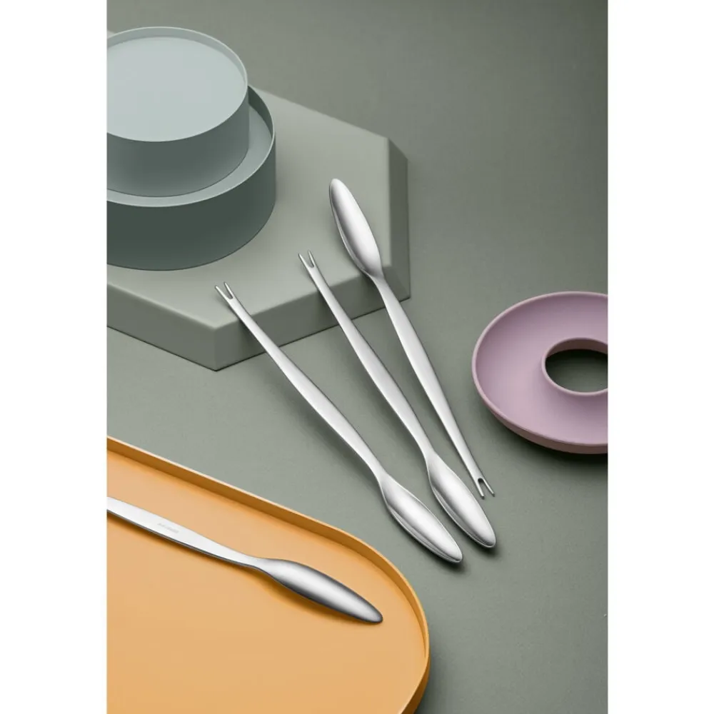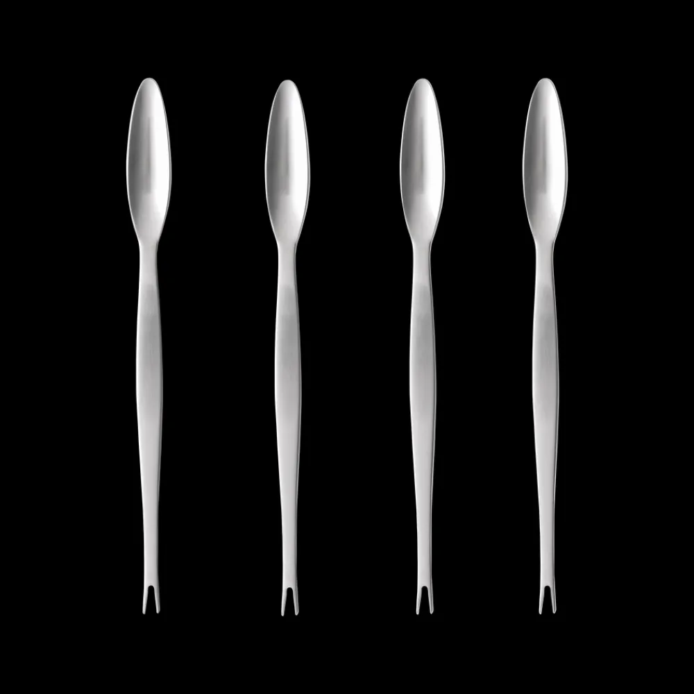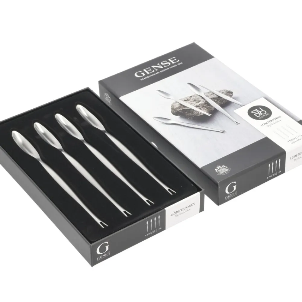 En klassisk skaldyrsgaffel med to tænder og ske i den anden ende, der gør det nemt at pille skaldyrskødet ud af kløer m.m. Tåler opvaskemaskine.