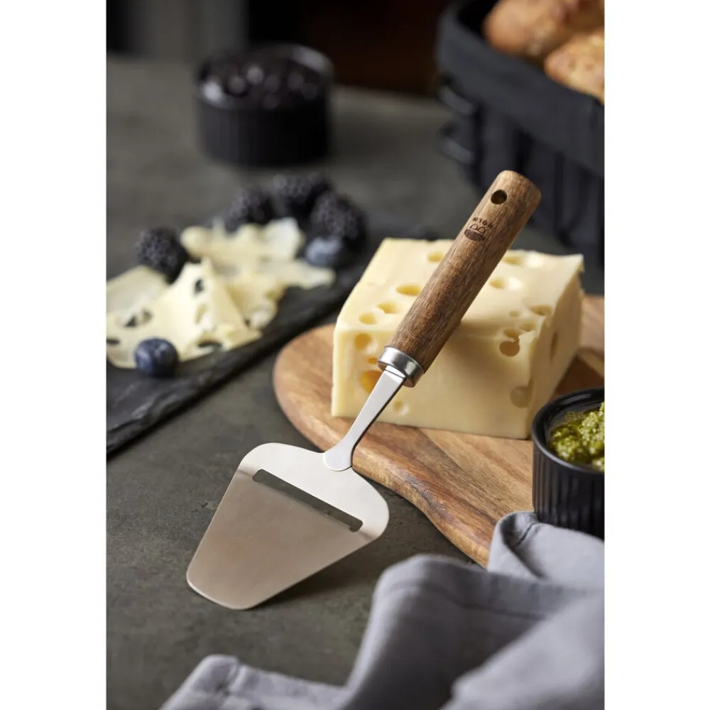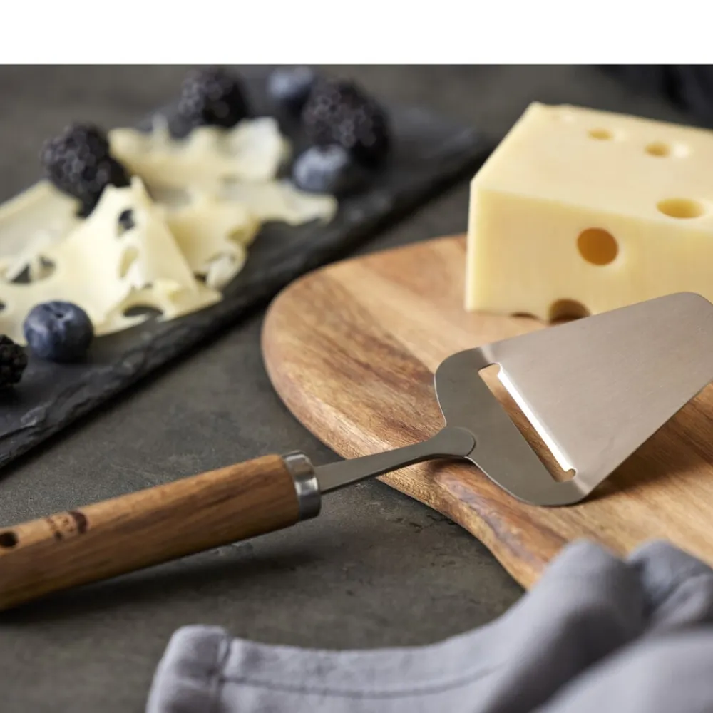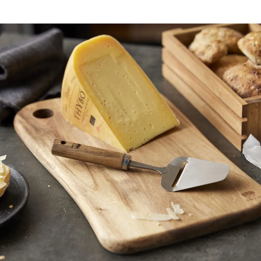 Den klassiske ostehøvl har fået en smuk opgradering med et håndtag af lækkert akacietræ. Vask ikke produkter af træ i opvaskemaskine. Vi anbefaler håndopvask og efterbehandling af håndtaget med smagsneutral olie et par gange om året.