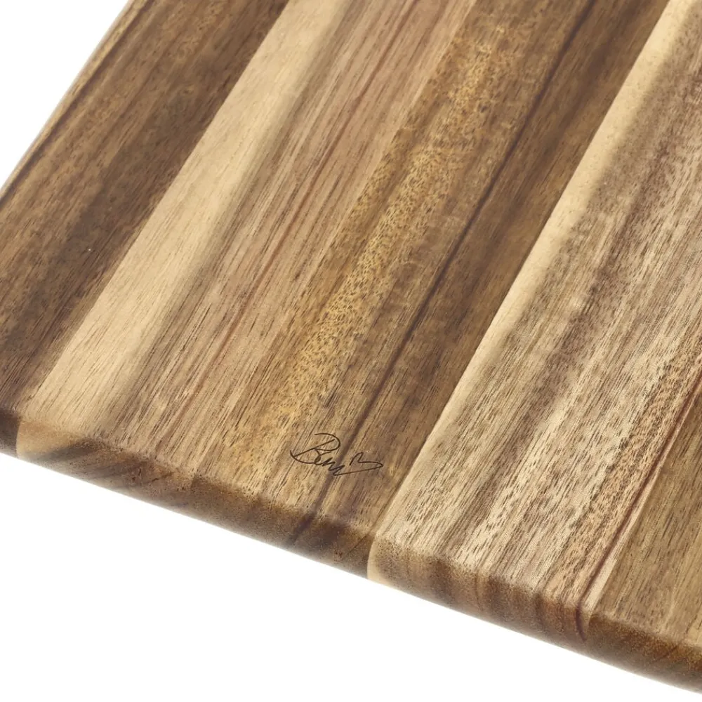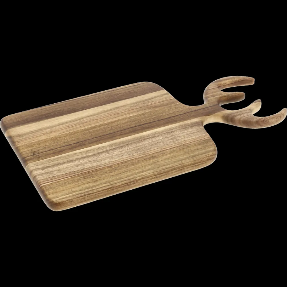 Serveringsbræt i smukt akacietræ. Geviret er et rustikt, elegant og praktisk håndtag på serveringsbrættet. Brættet er ideelt til servering af ost, tapasretter og andre anretninger eller som skærebræt under tilberedning af måltidet. Læg aldrig brættet i blød. Vaskes med varmt vand og mild sæbe. Tåler ikke opvaskemaskine. 36 x 21 x 1,5 cm.
