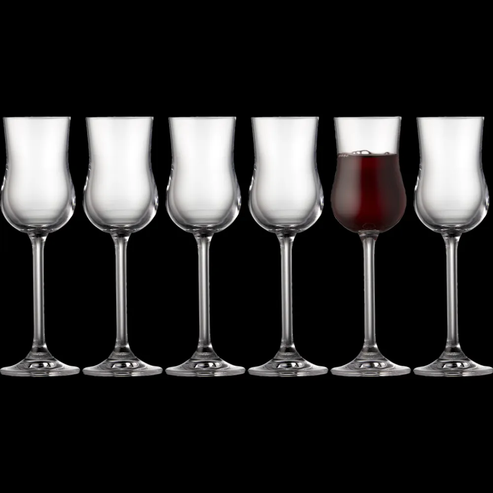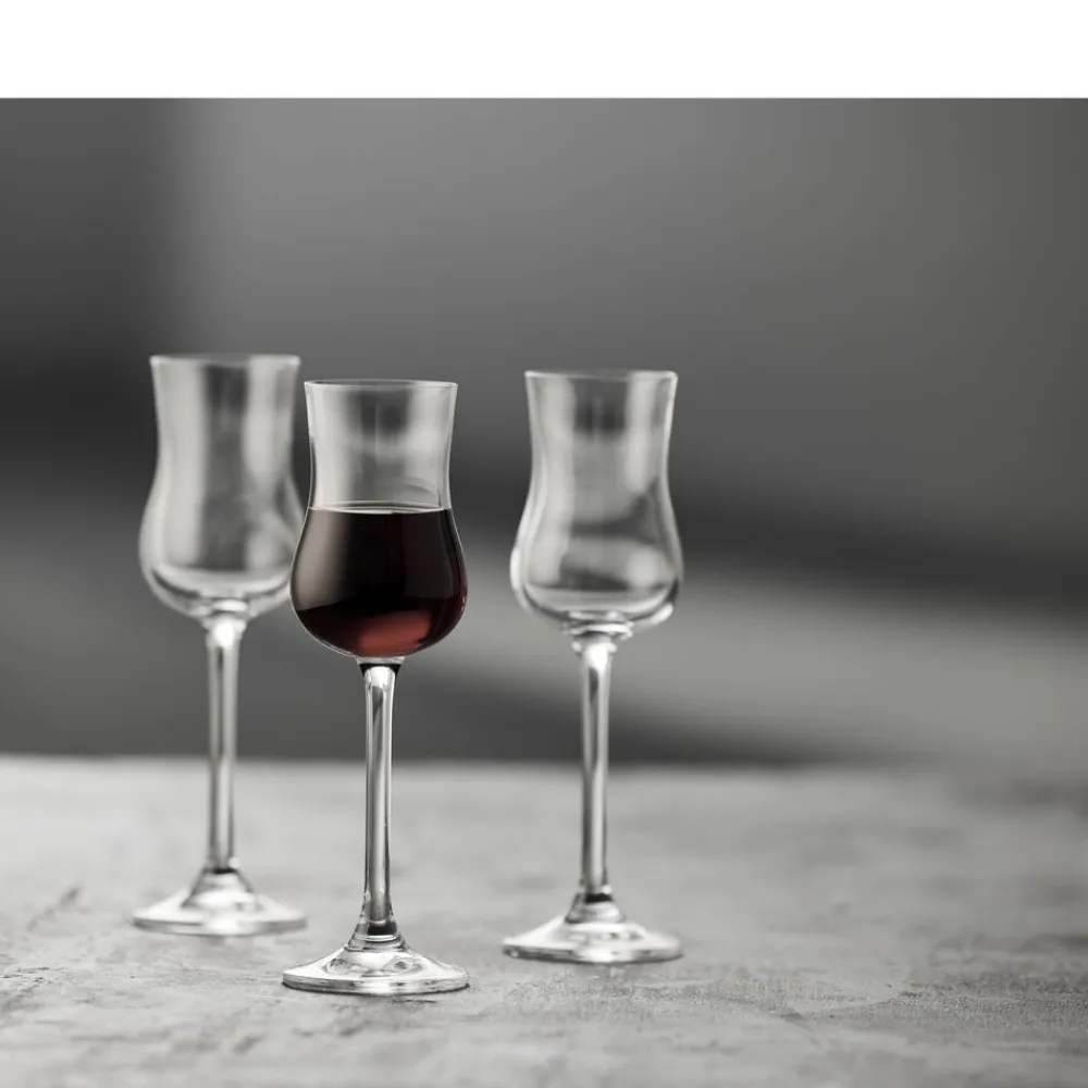 Det smukke, stilfulde Juvel Portvinsglas er perfekt til både dessertvin som portvin og spiritus som rom, whisky og ikke mindst den italienske specialitet grappa, som det raffinerede design traditionelt er udviklet til. 9 cl. 6 stk.