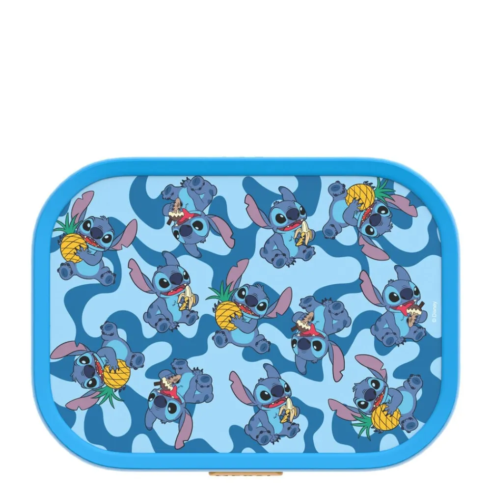 Robust og rummelig Mepal madkasse med Stitch-motiv. Madkassen har en smart og effektiv lukkemekanisme, som er nem for børnene at betjene. Madkassen måler 17,5 x 13 x 6 cm og indeholder en lille gaffel og en aftagelig indsats med to små rum.